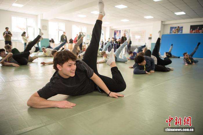 图为美国艾奥瓦州青少年“友谊传承”研学团成员体验中国武术。