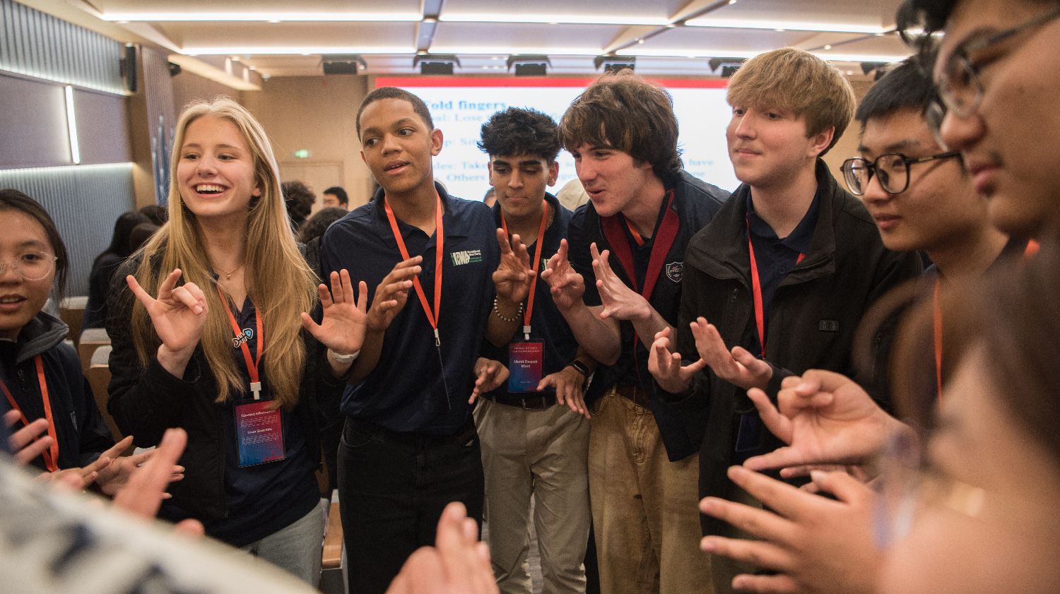 3月18日,在石家庄外国语学校,中美青少年进行游戏互动。(图片来源:中新社)