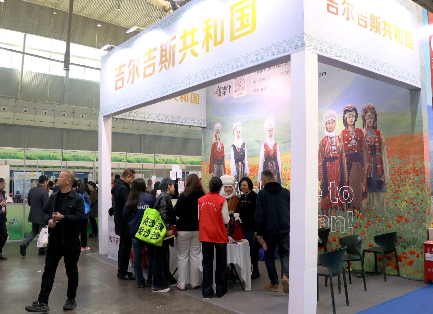 3月27日,第七届新疆春季旅游博览会在乌鲁木齐市开幕。图为吉尔吉斯斯坦展位。(图片来源:中新社)