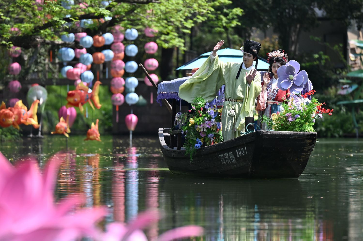 “花神”乘船水上巡游。(图片来源:本文图片均据中新社)