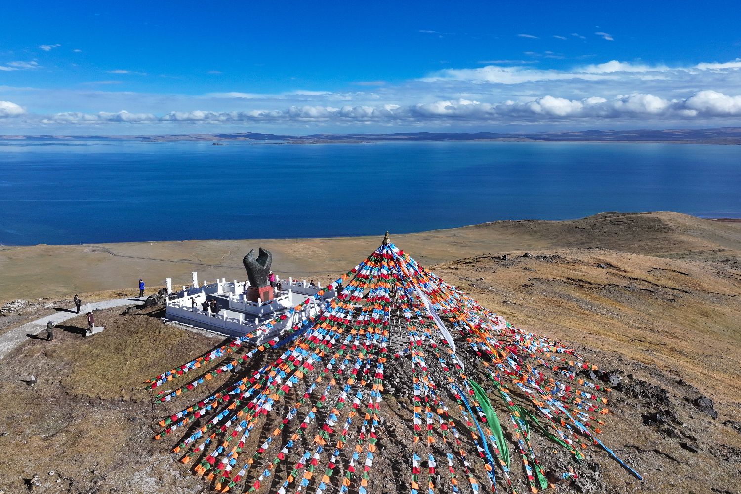 2025年9月20日,航拍黄河源头鄂陵湖静谧柔美,秋意正浓。 (图片来源:中新社)
