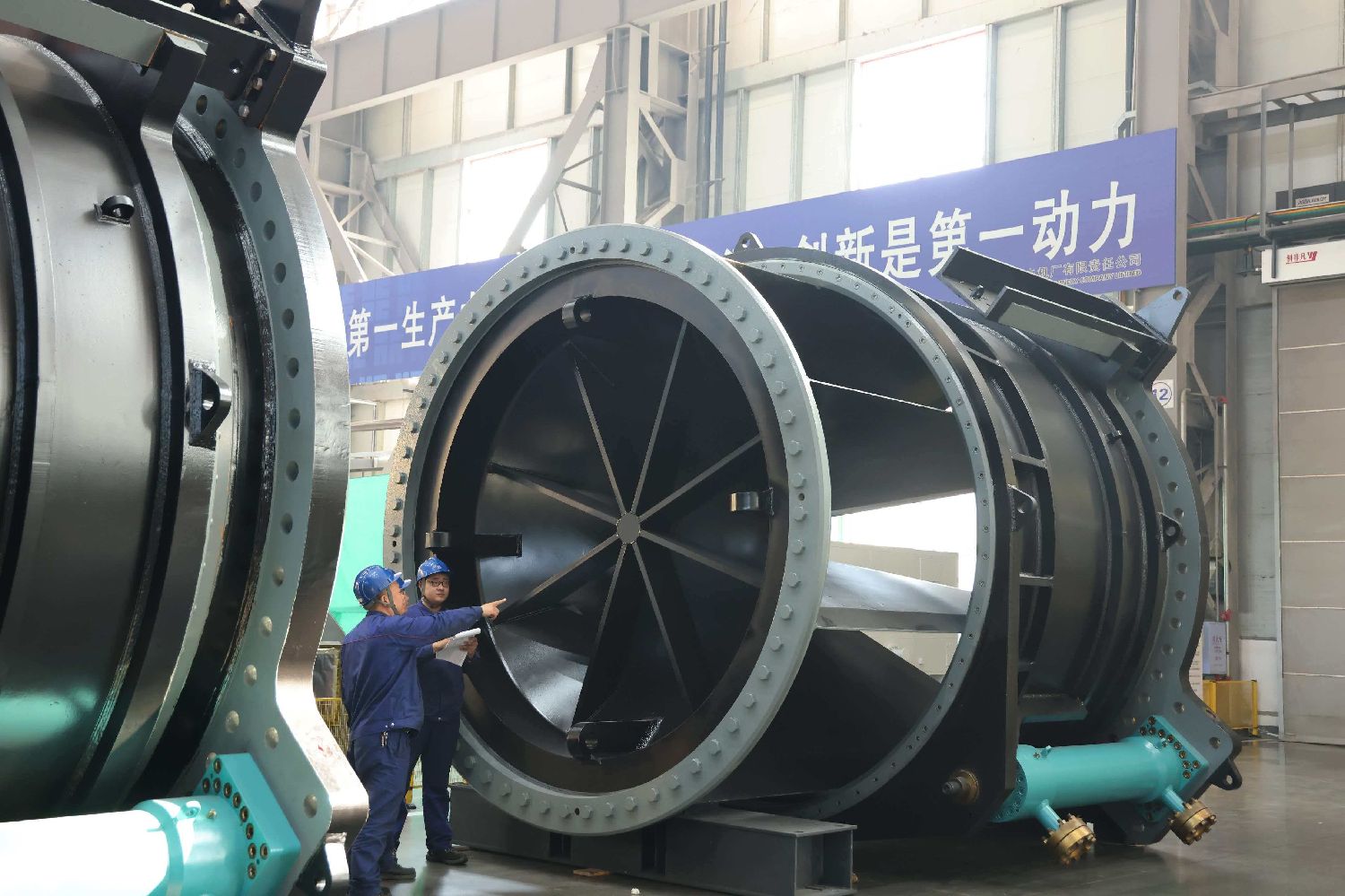 4月1日,哈电集团哈尔滨电机厂有限责任公司发布消息,该公司为巴基斯坦塔贝拉五期水电扩建项目自主研制的世界最大水电泄压阀在哈尔滨完成装配试验。 (图片来源:中新社)