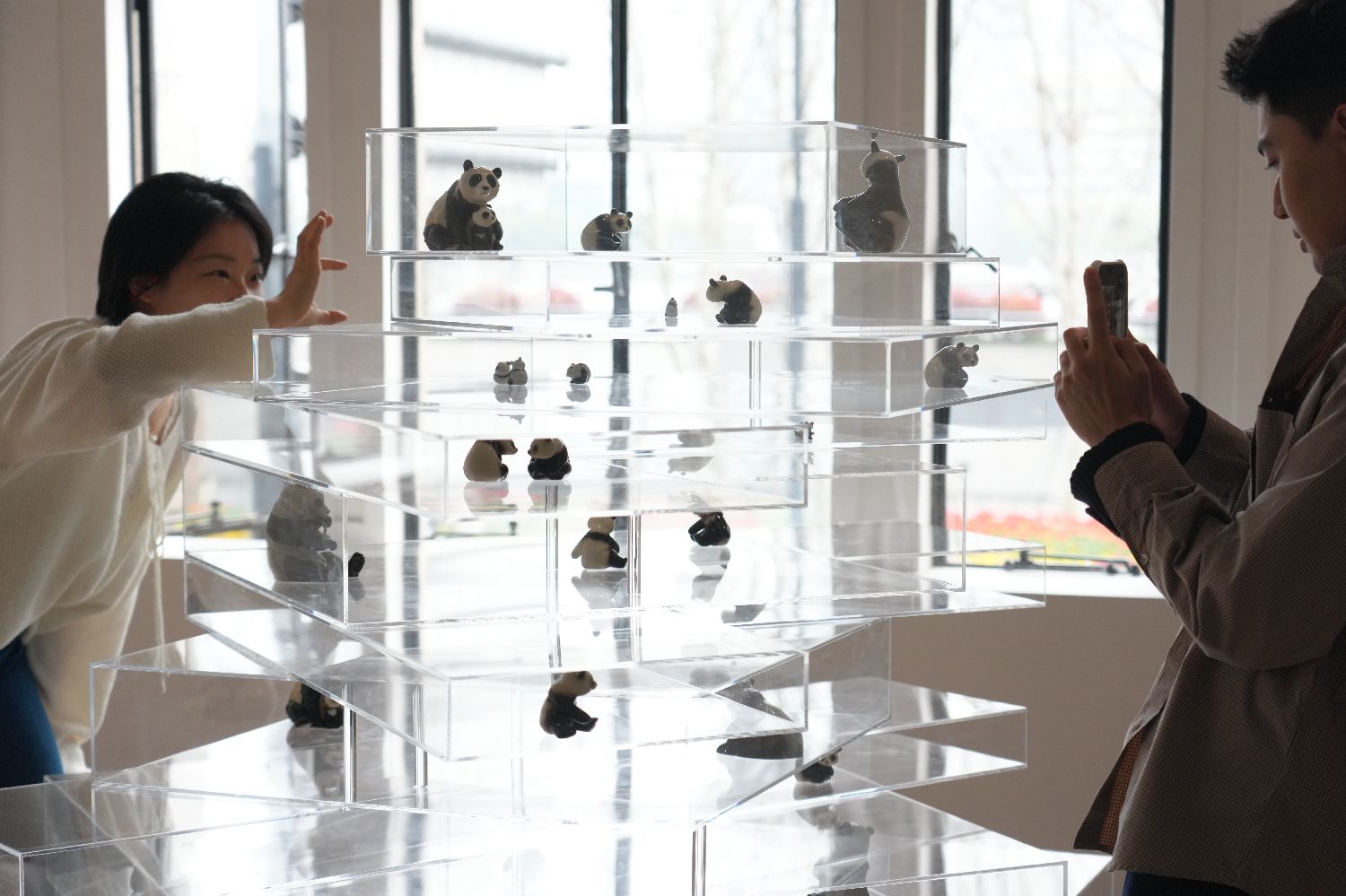 观众欣赏韩国艺术家韩庚佑的作品《塑料岛屿》。