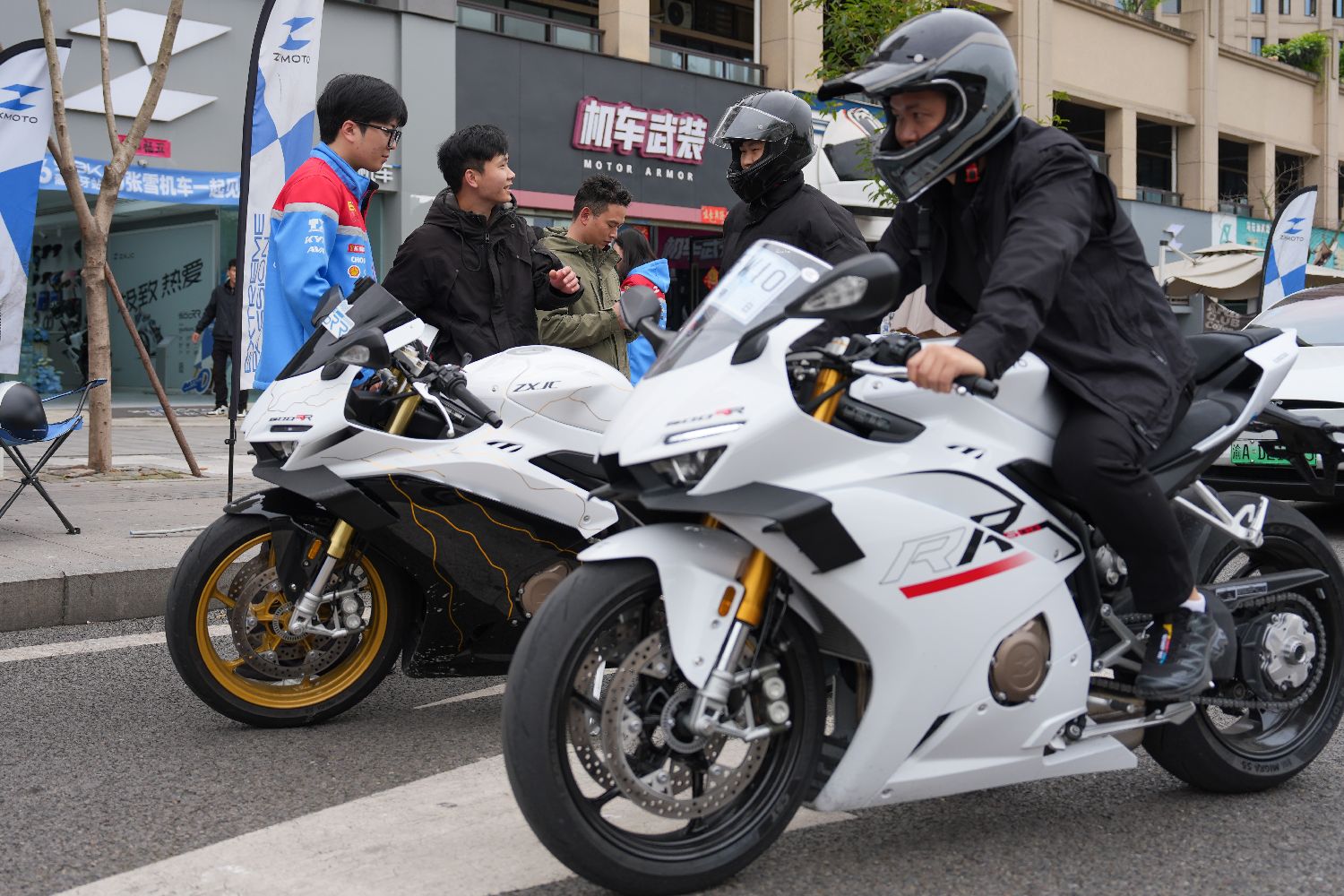 4月1日下午,多名顾客在张雪机车重庆市两江新区店试驾。(图片来源:中新社)