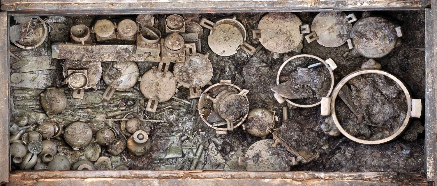 本项研究中武王墩一号墓东一室出土的青铜鼎等。(图片来源:中新社)
