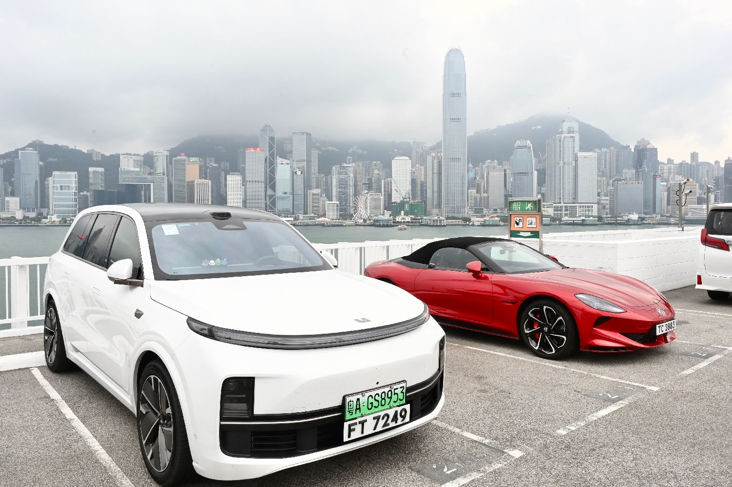 3月31日,一辆粤A牌照的私家车(左)停在香港尖沙咀一个户外停车场。2025年12月23日零时起,“粤车南下”入境香港市区正式实施,该政策在2026年4月1日迎来实施第100天。(图片来源:中新社)