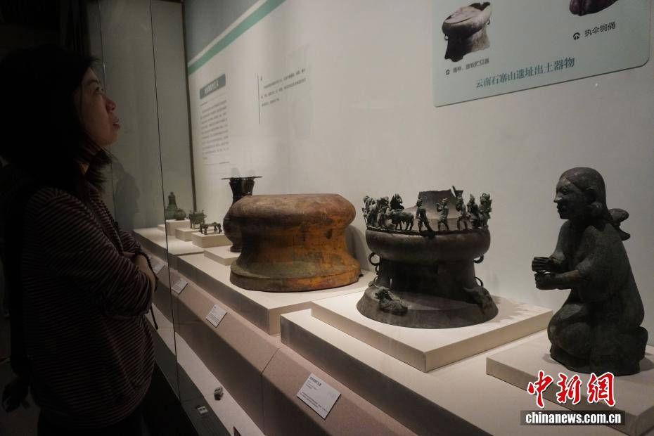 观众观看展出的青铜器。