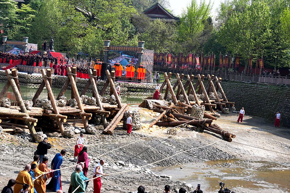 四川省李冰研究会副会长王国平介绍,放水节源于古代岁修制度,冬季枯水期淘滩清淤后,清明时节砍开杩槎引江水入平原,放水节是千年民俗盛典与农事关键环节,“深淘滩、低作堰”的治水理念及古法技艺在各大流域沿用。