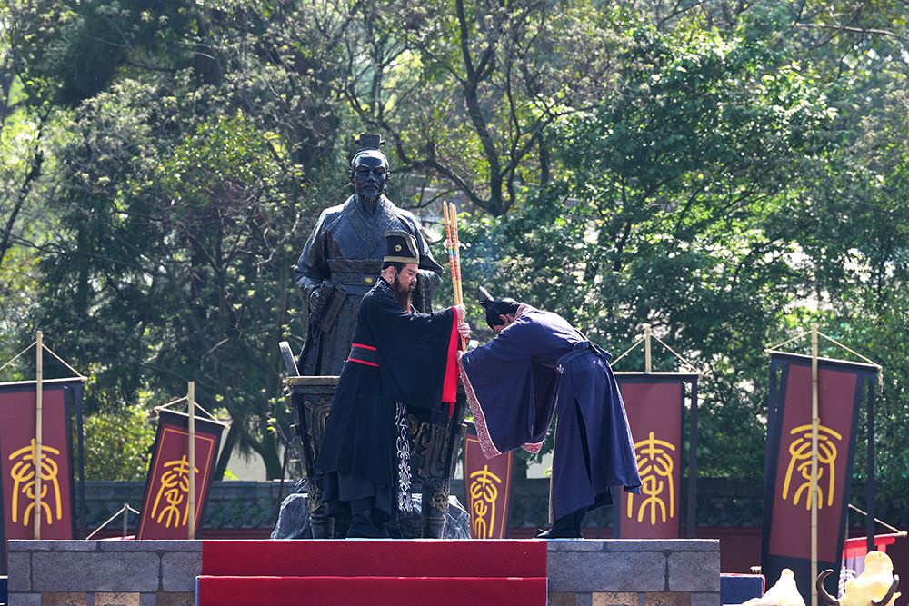 4月3日,2026都江堰放水节在四川都江堰启幕,图为祭拜仪式。(图片来源:中新社)
