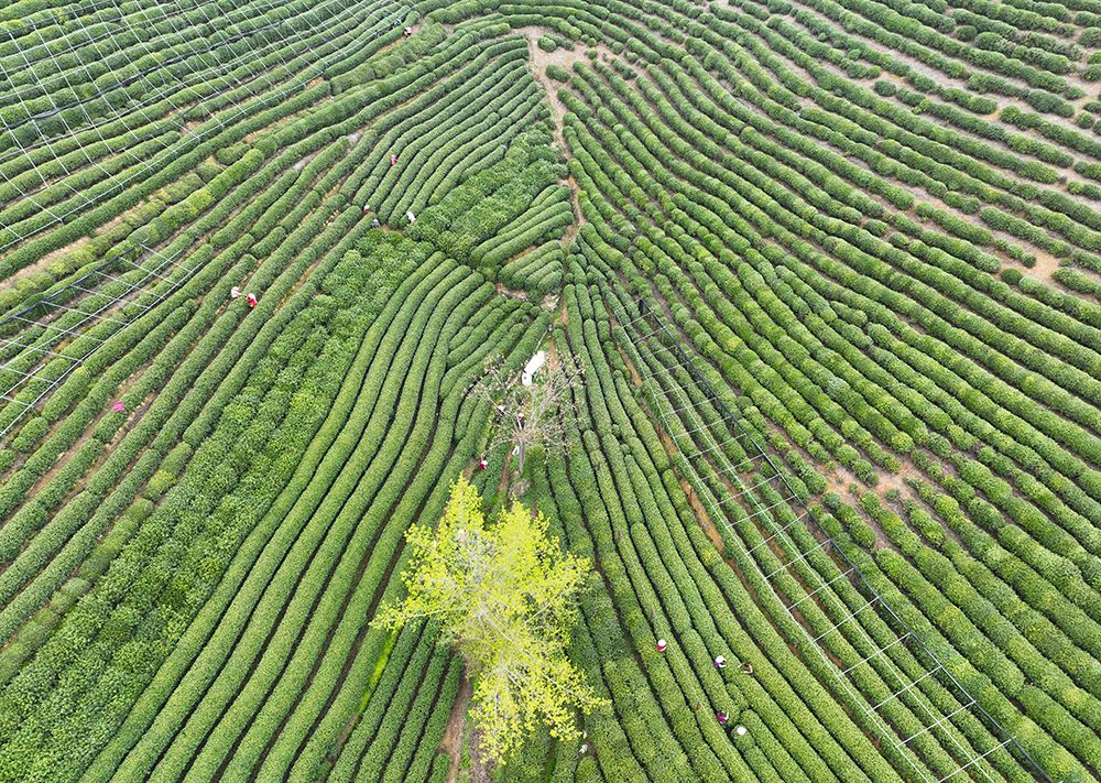 3月27日,浙江杭州西湖龙井明前茶已迎来大面积开采。(图片来源:中新社)