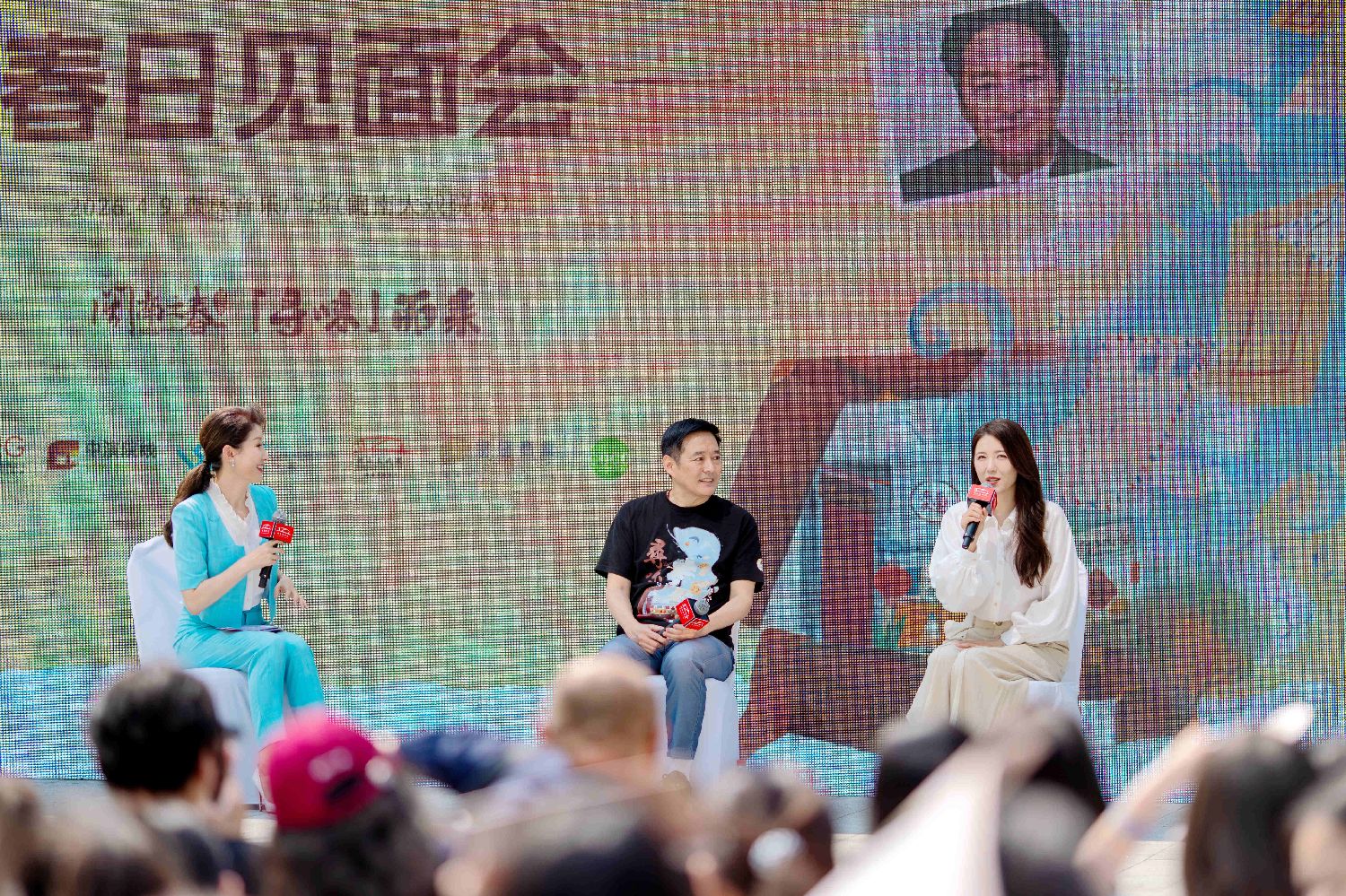 4月9日,闽南大戏院2026年闽南之春演出季在厦门开幕。图为话剧《寻味》主演曾黎(右)与观众分享创作感悟与舞台故事。(图片来源:中新社)