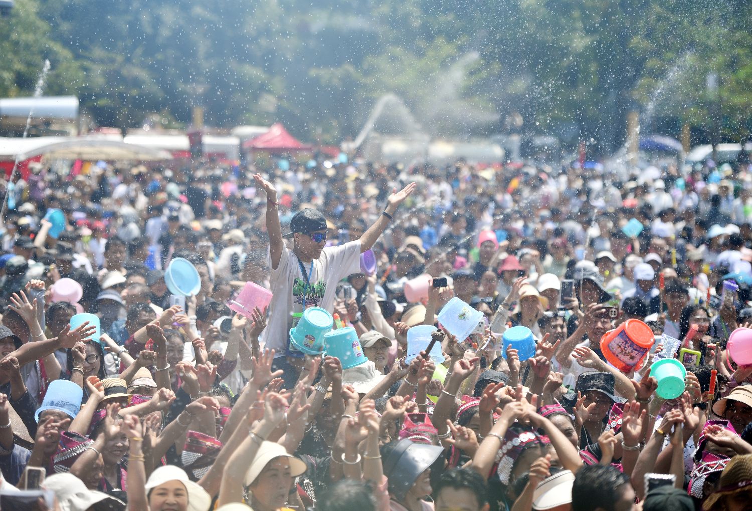 民众参与泼水狂欢。(图片来源:本文图片均据中新社)
