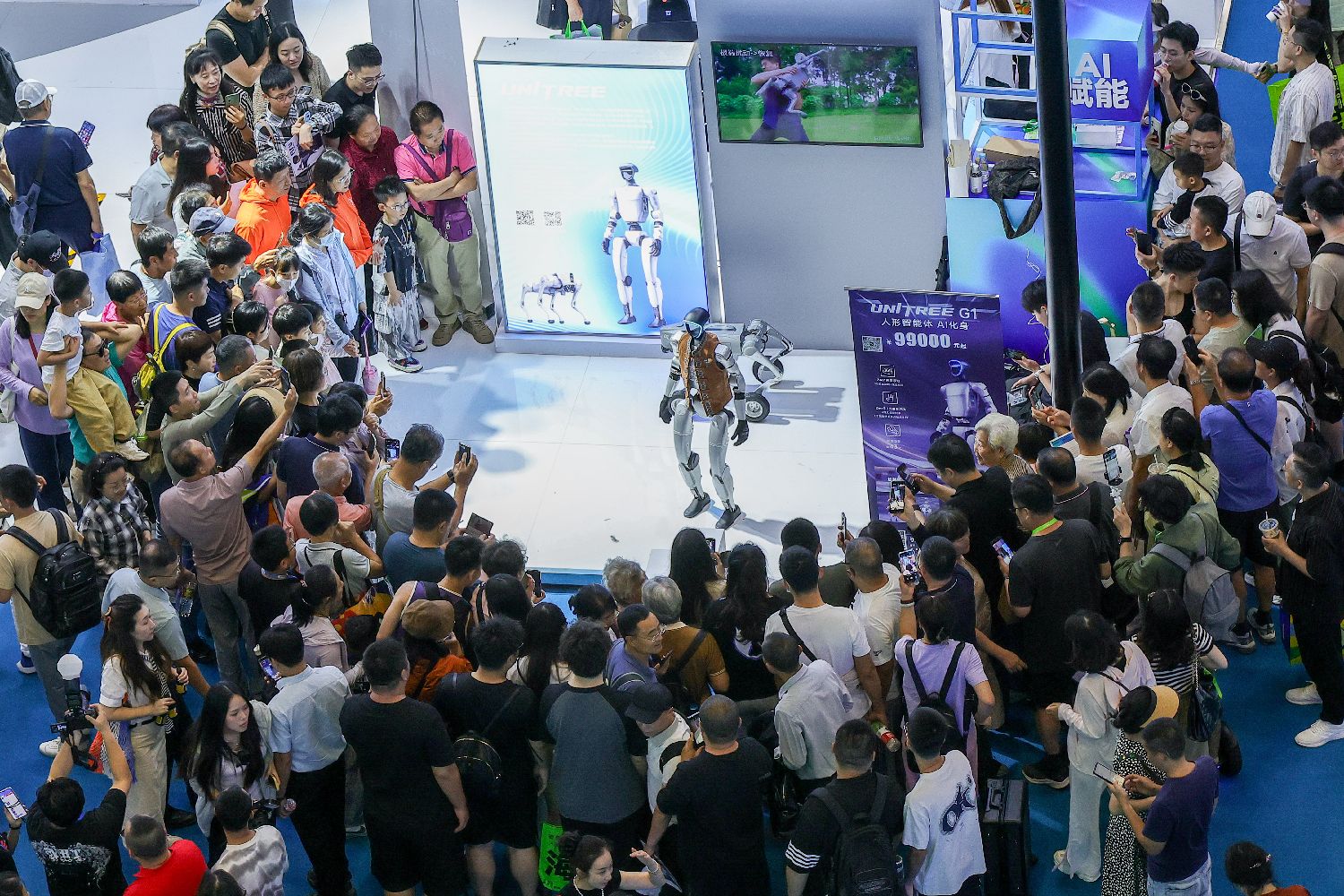 2025年4月17日,第五届中国国际消费品博览会上,宇树科技展出的智能机器人吸引参观者。(图片来源:中新社)