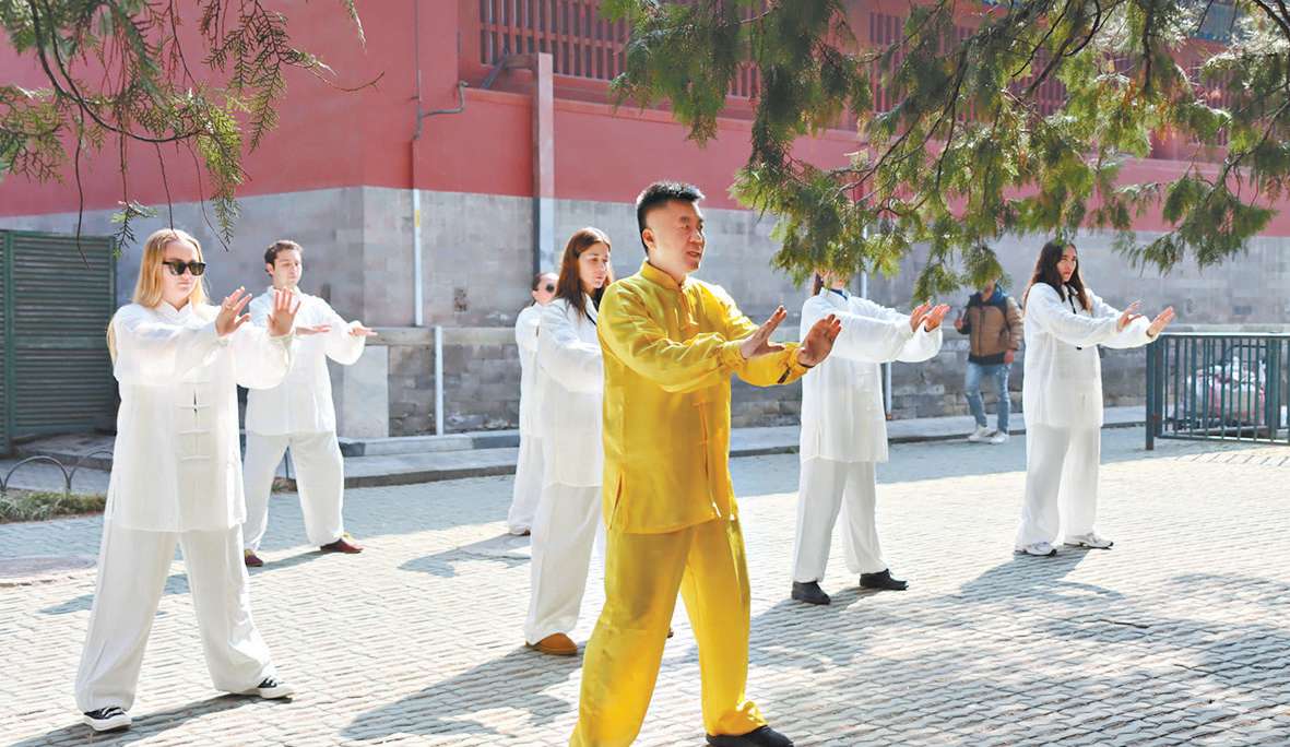 红墙映射着晨光,古柏伴着习练者的掌风拳影,一群在天坛打太极拳的外国游客已成了这里的独特风景。如今,天坛太极体验课正在成为最受外国游客欢迎的体验项目之一。