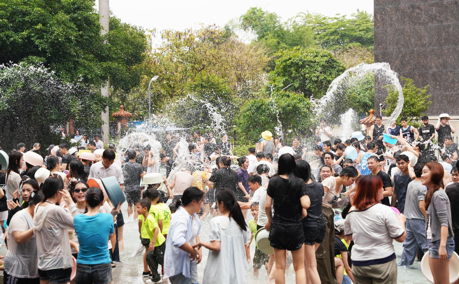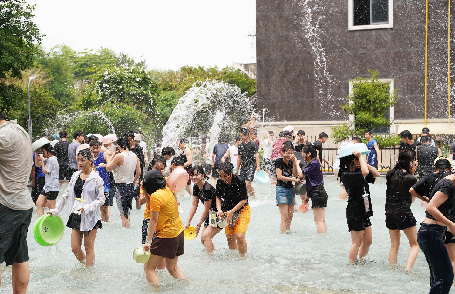 4月14日,广西南宁市,在广西民族大学举办的2026年国际文化节暨泼水节活动上,来自泰国、老挝、柬埔寨、缅甸等国家的留学生与中国师生齐聚一堂,以泼水互送祝福。