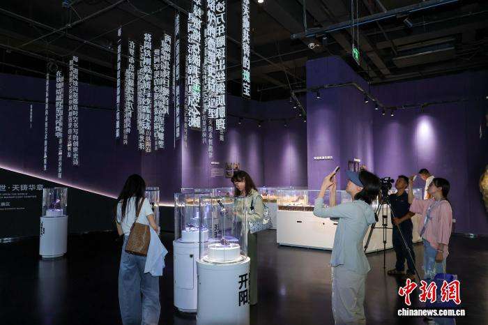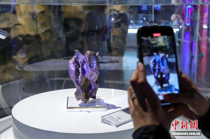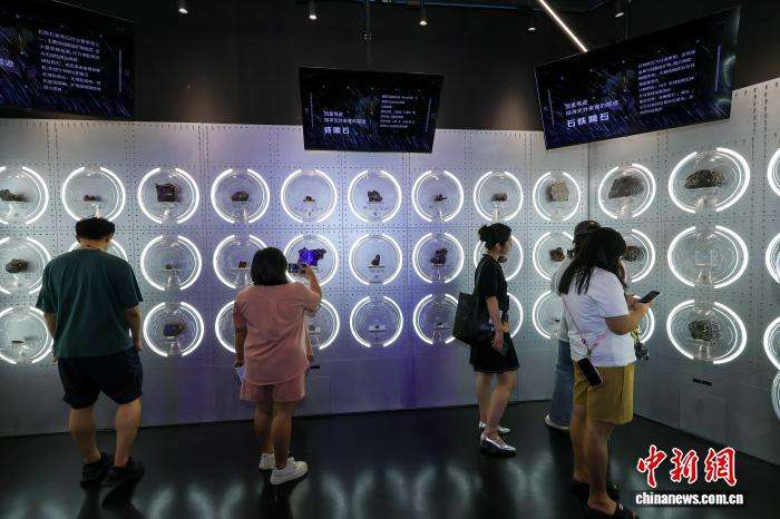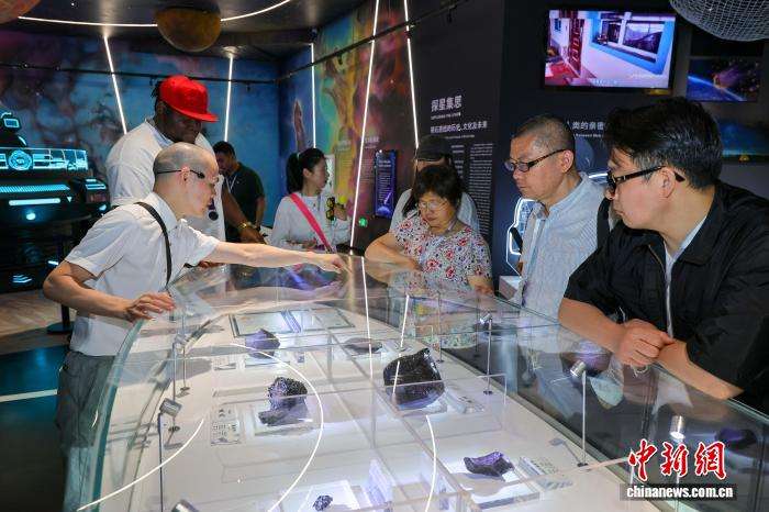 图为文昌极星陨石博物馆内展出的多款陨石标本吸引海内外媒体人目光。