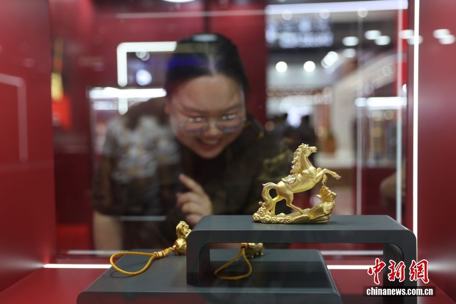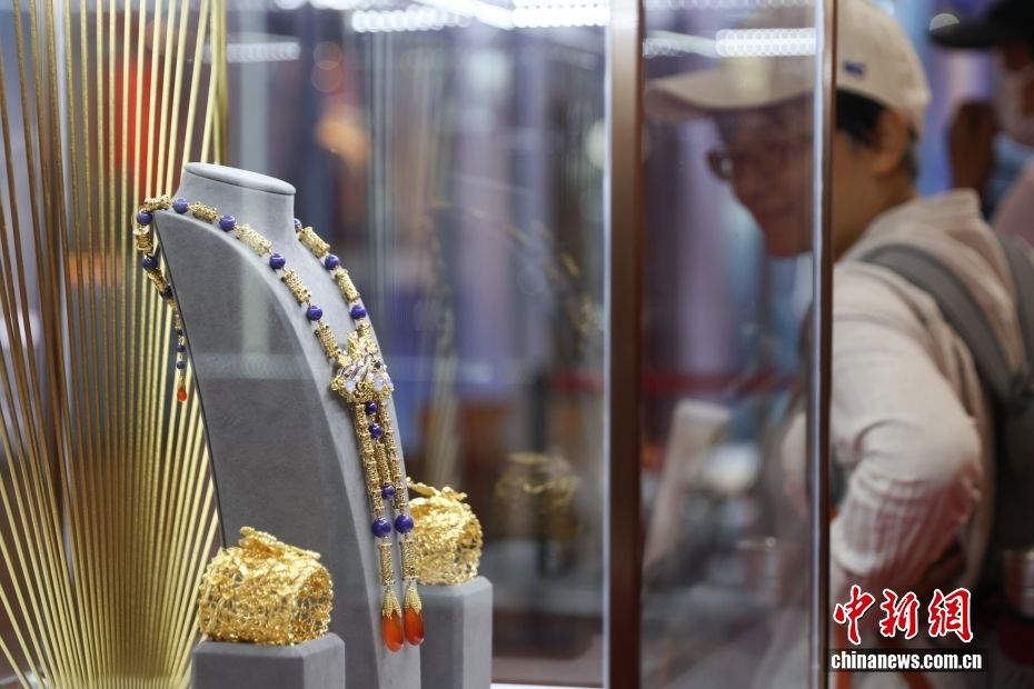第六届中国国际消费品博览会正在海南海口举行,黄金产品引来不少参观者关注。