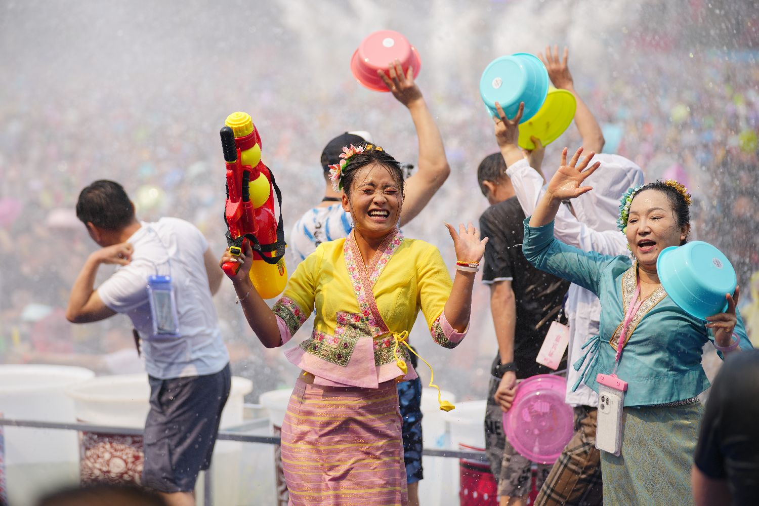 欢乐的泼水节现场。(图片来源:本文图片均据中新社)
