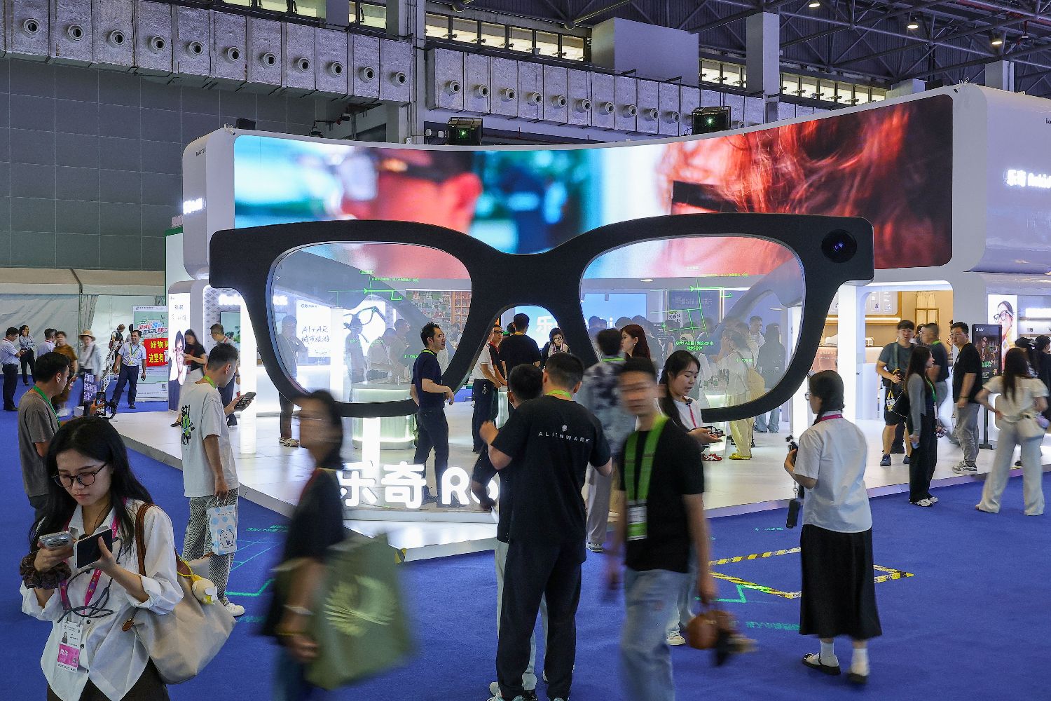 图为一台巨型AI眼镜亮相第六届消博会现场。(图片来源:中新社)