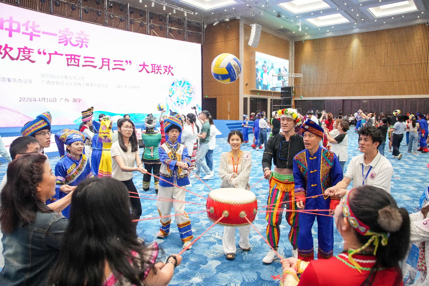 4月16日,中华一家亲——2026桂台各民族欢度“广西三月三”大联欢活动在广西南宁举行。500余名桂台两地同胞跨越山海,齐聚一堂,共叙两岸亲情,共话交流合作
