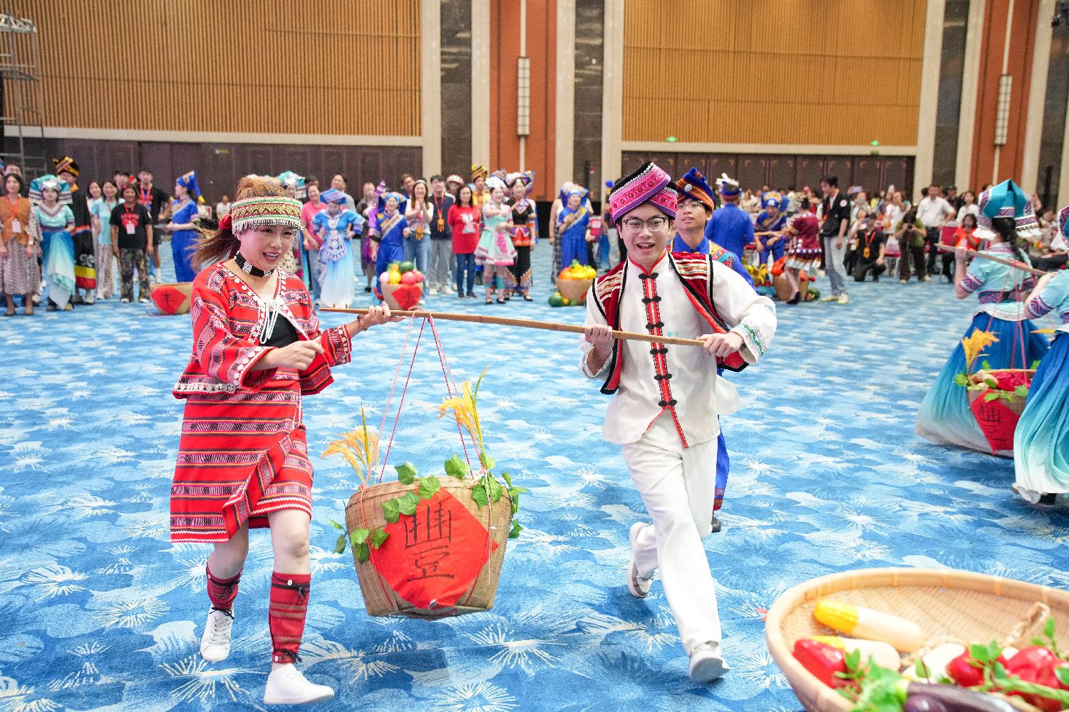 桂台两地同胞共同参与互动活动“把丰收带回家(挑扁担)”