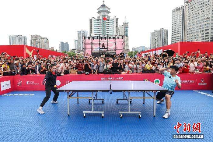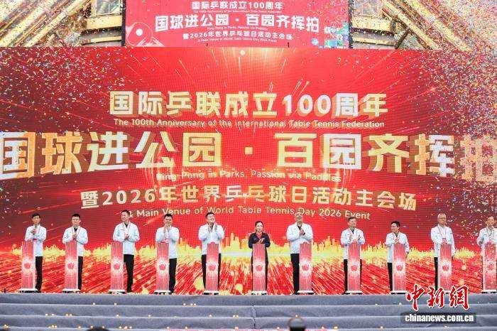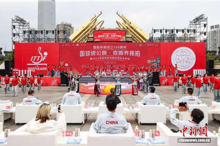 4月20日,贵州省贵阳市,国际乒联成立100周年“国球进公园·百园齐挥拍”暨2026年世界乒乓球日贵阳主会场活动举行。此次活动分为国球进校园、启动仪式、百台千人赛三个环节,国际乒联运动员委员会主席、奥运冠军、世界冠军刘诗雯等嘉宾与千余名乒乓球爱好者共庆世界乒乓球日。