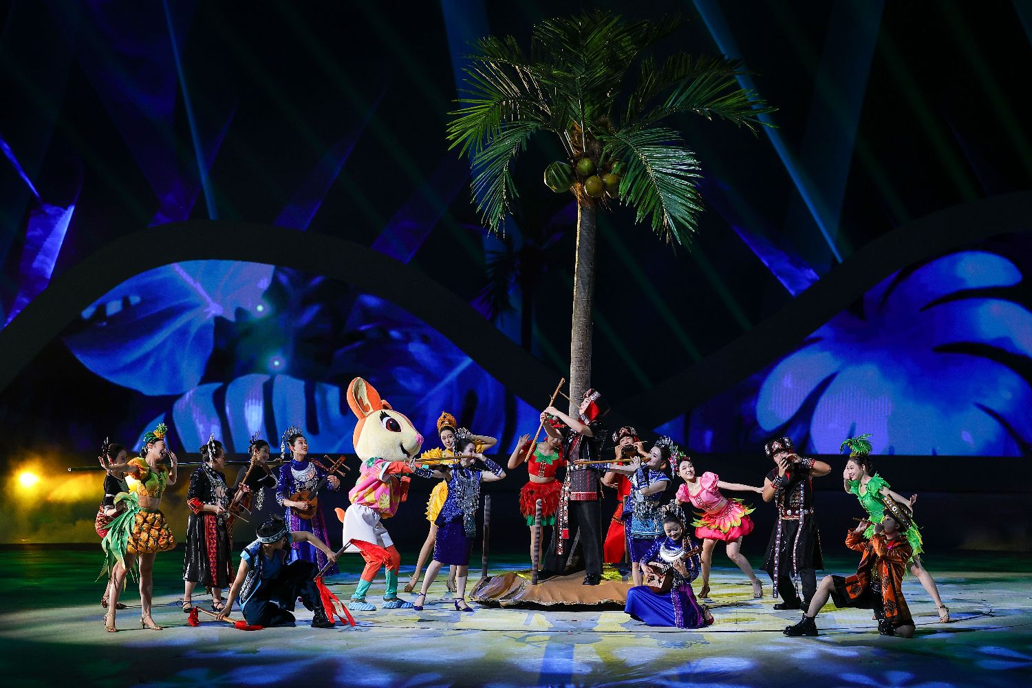在文艺表演环节,海南文脉、海洋文化与自贸港胸襟融为一体,于椰风海韵间,呈现厚重而鲜活的海南风采。