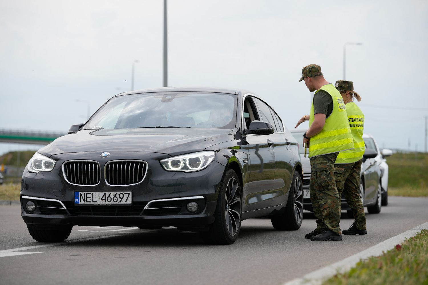 7月7日,在波兰与立陶宛交界的苏瓦乌基县布济斯科村,执法人员对进入波兰的车辆进行检查。(图片来源:本文图片均据新华社)