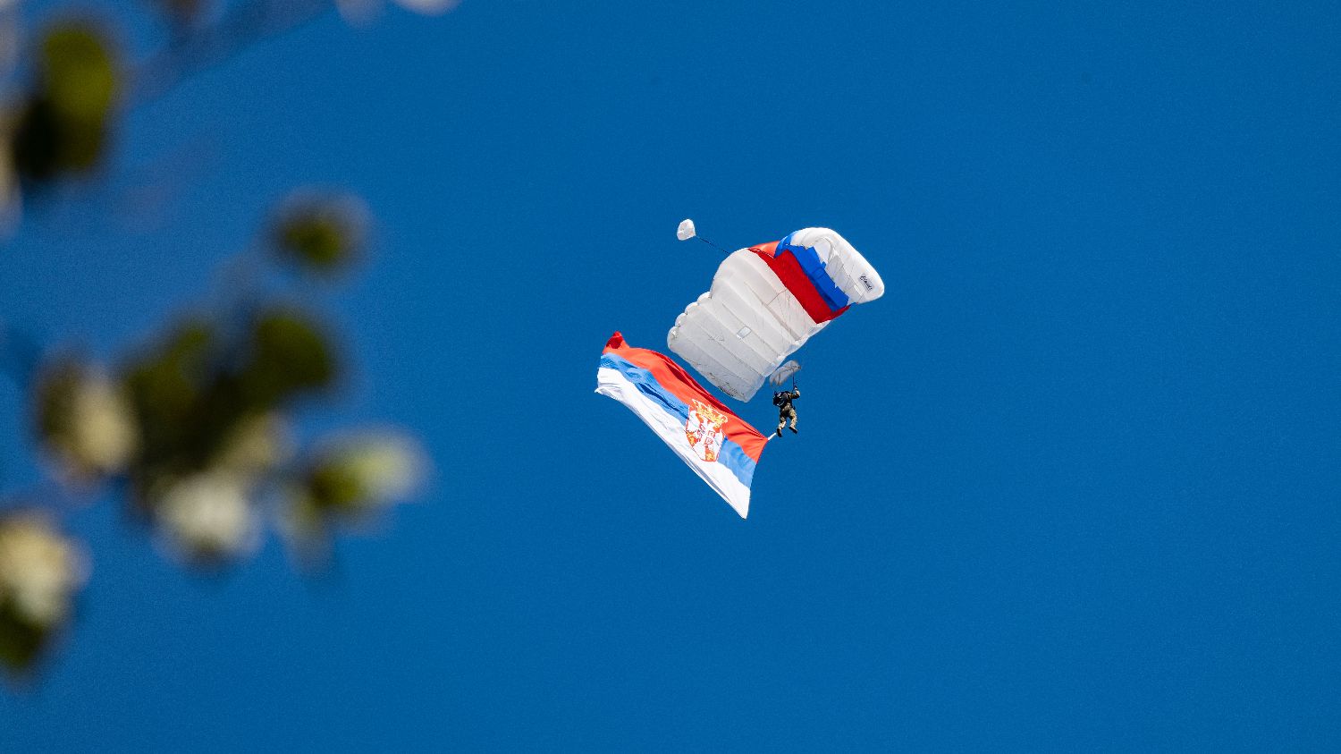 20日上午,塞尔维亚在首都贝尔格莱德市举行“团结的力量”阅兵式,纪念塞尔维亚统一、自由和国旗日。