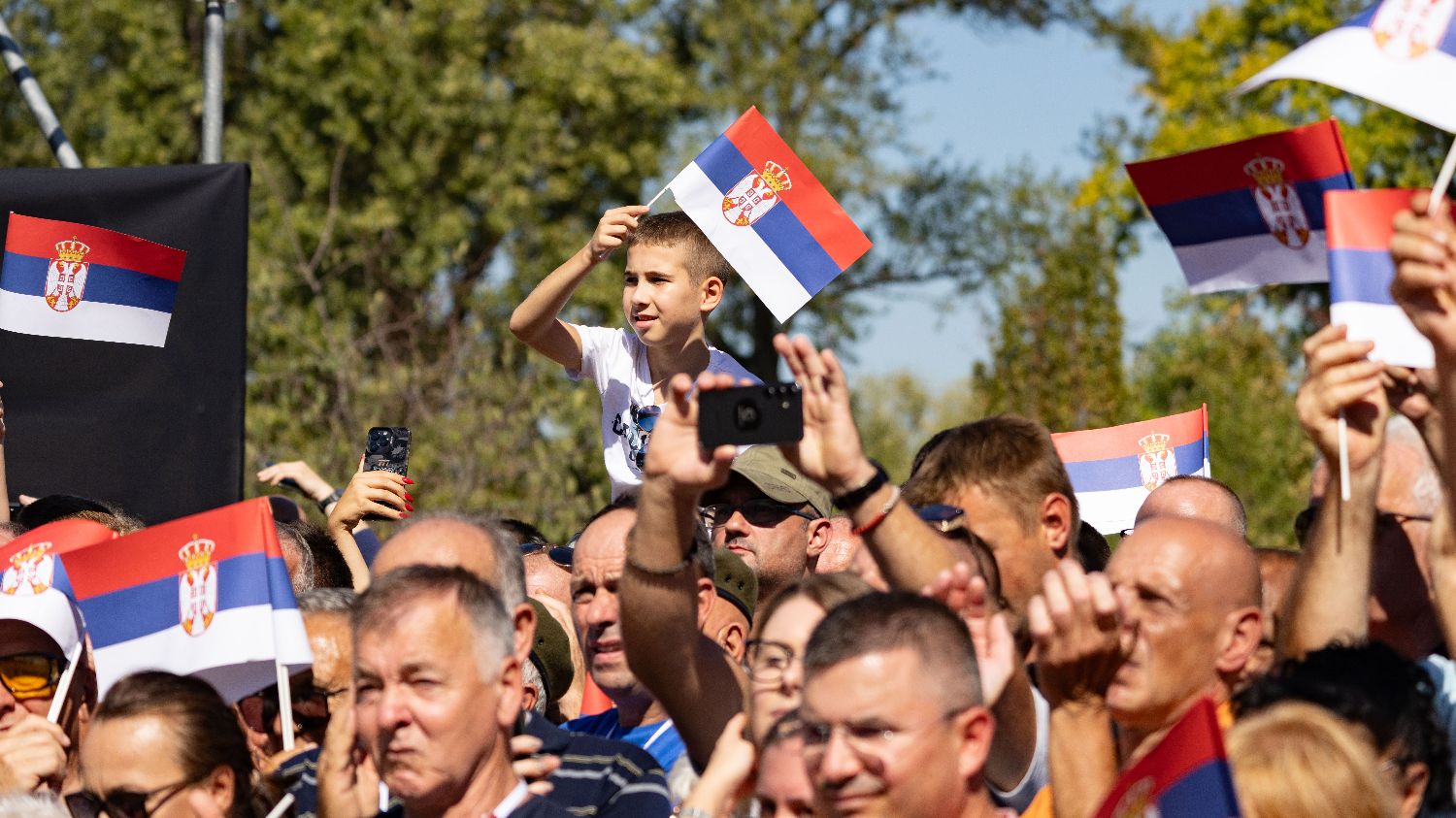 9月20日在塞尔维亚首都贝尔格莱德拍摄的“团结的力量”阅兵式现场。