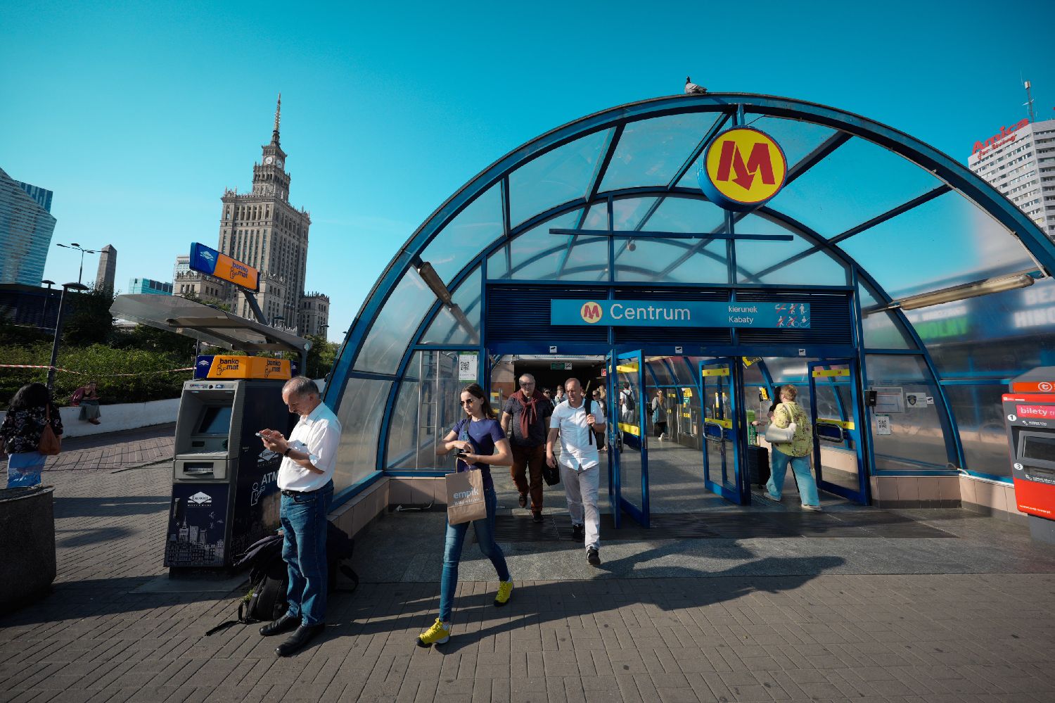 9月22日在波兰华沙市中心拍摄的一座地铁站出入口。