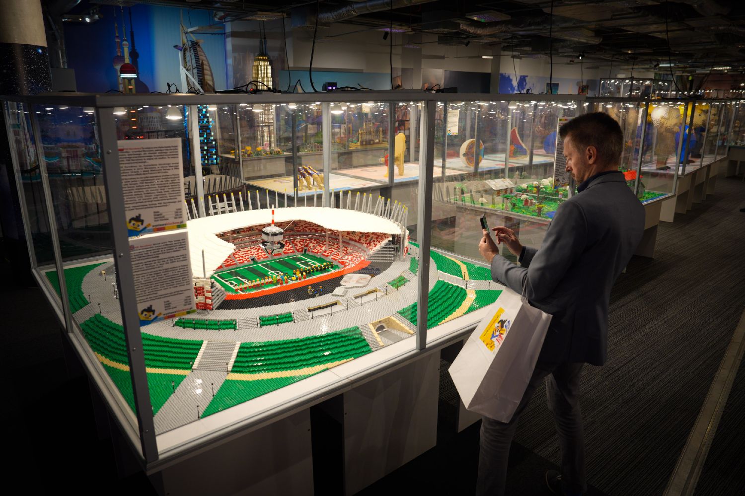 10月3日,参观者在波兰华沙举行的乐高积木展上拍摄国家体育场模型。当日,欧洲规模最大的乐高积木展在华沙国家体育场开幕。(图片来源:本文图片均自新华社)