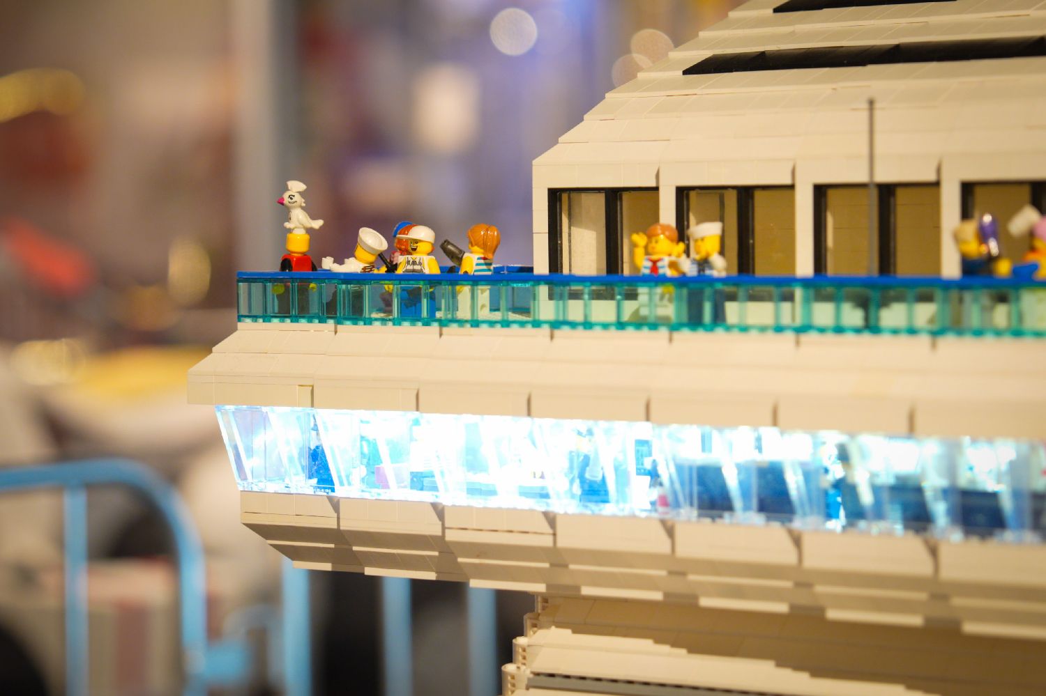 在波兰华沙举行的乐高积木展上拍摄的邮轮主题模型的细节。