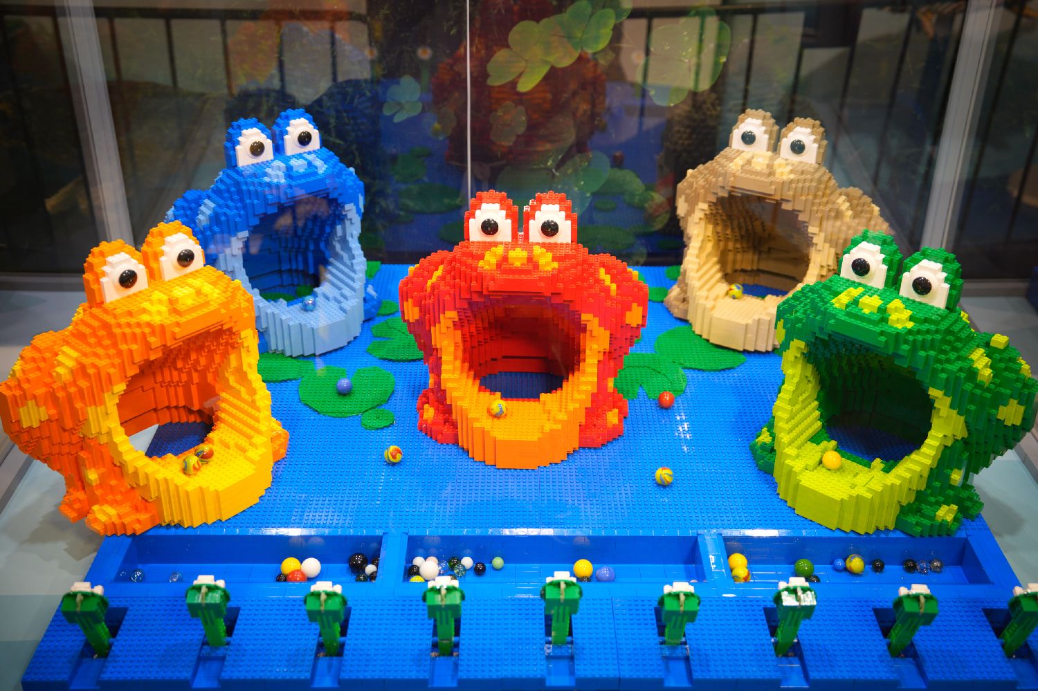 在波兰华沙举行的乐高积木展上拍摄的卡通青蛙模型。