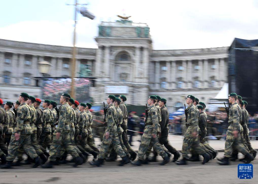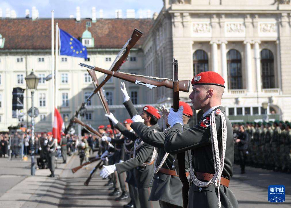 10月26日,在奥地利维也纳,仪仗兵在国庆日活动上表演。(图片来源:本文图片均据新华社)