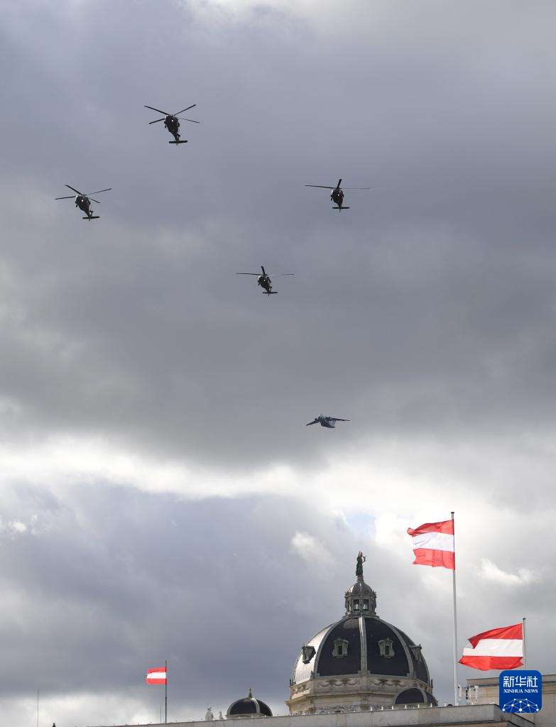 10月26日,在奥地利维也纳,直升机编队飞过霍夫堡。