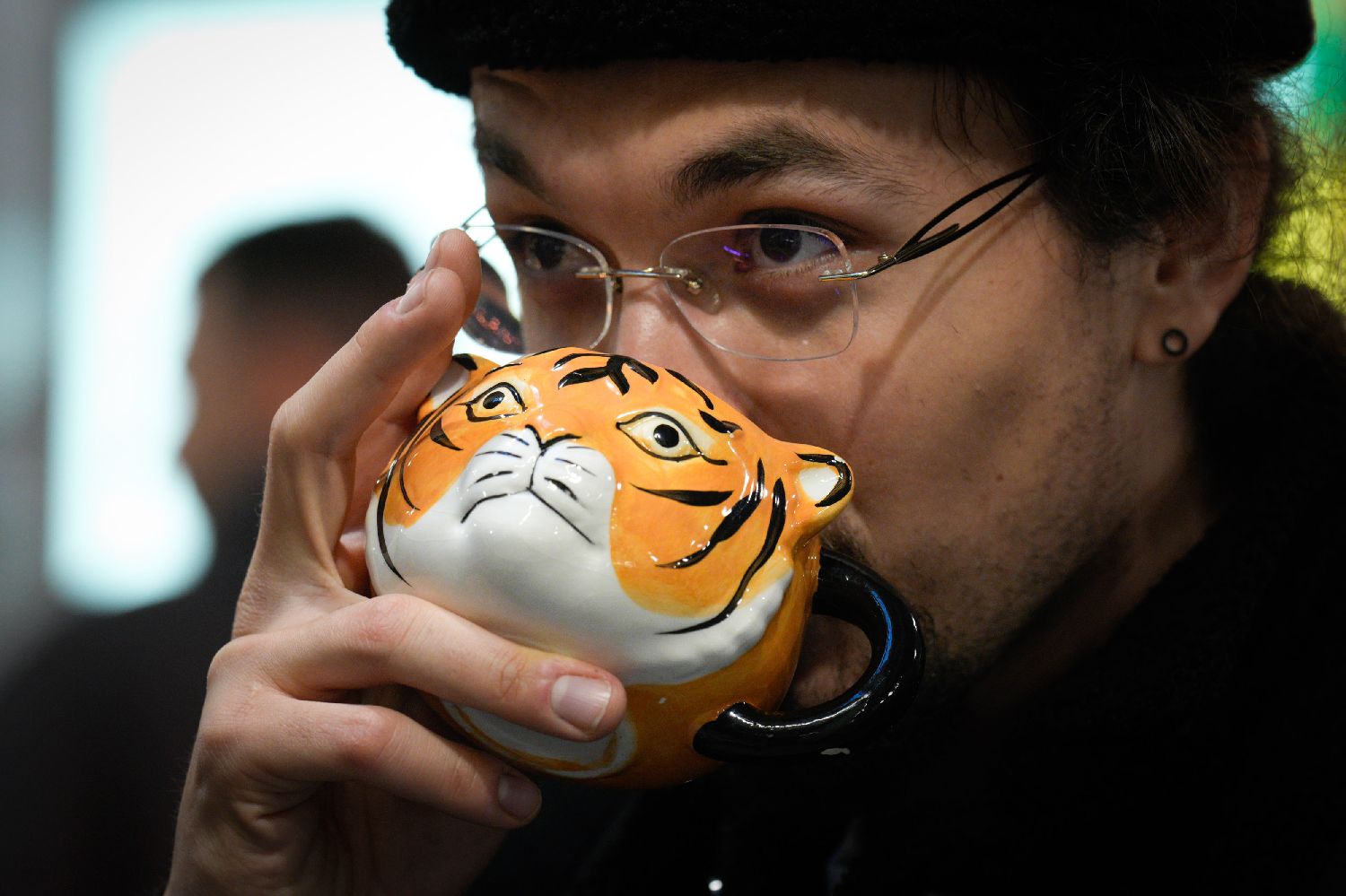11月22日,一名参观者在波兰华沙咖啡节上品尝咖啡。