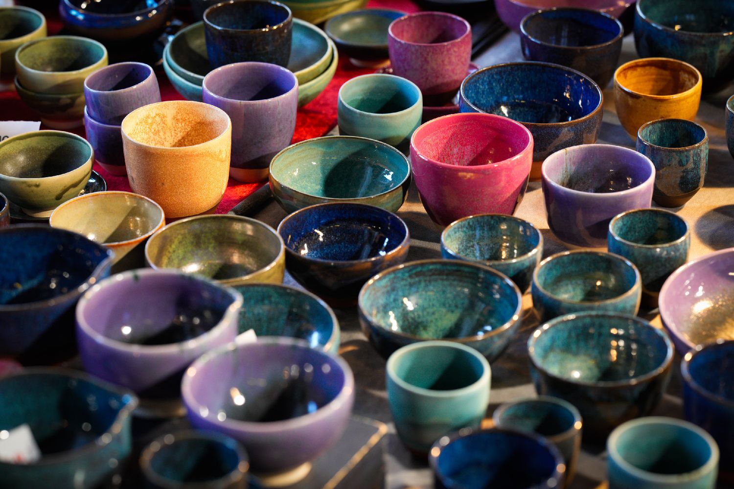 在波兰华沙咖啡节上拍摄的手工陶瓷杯。