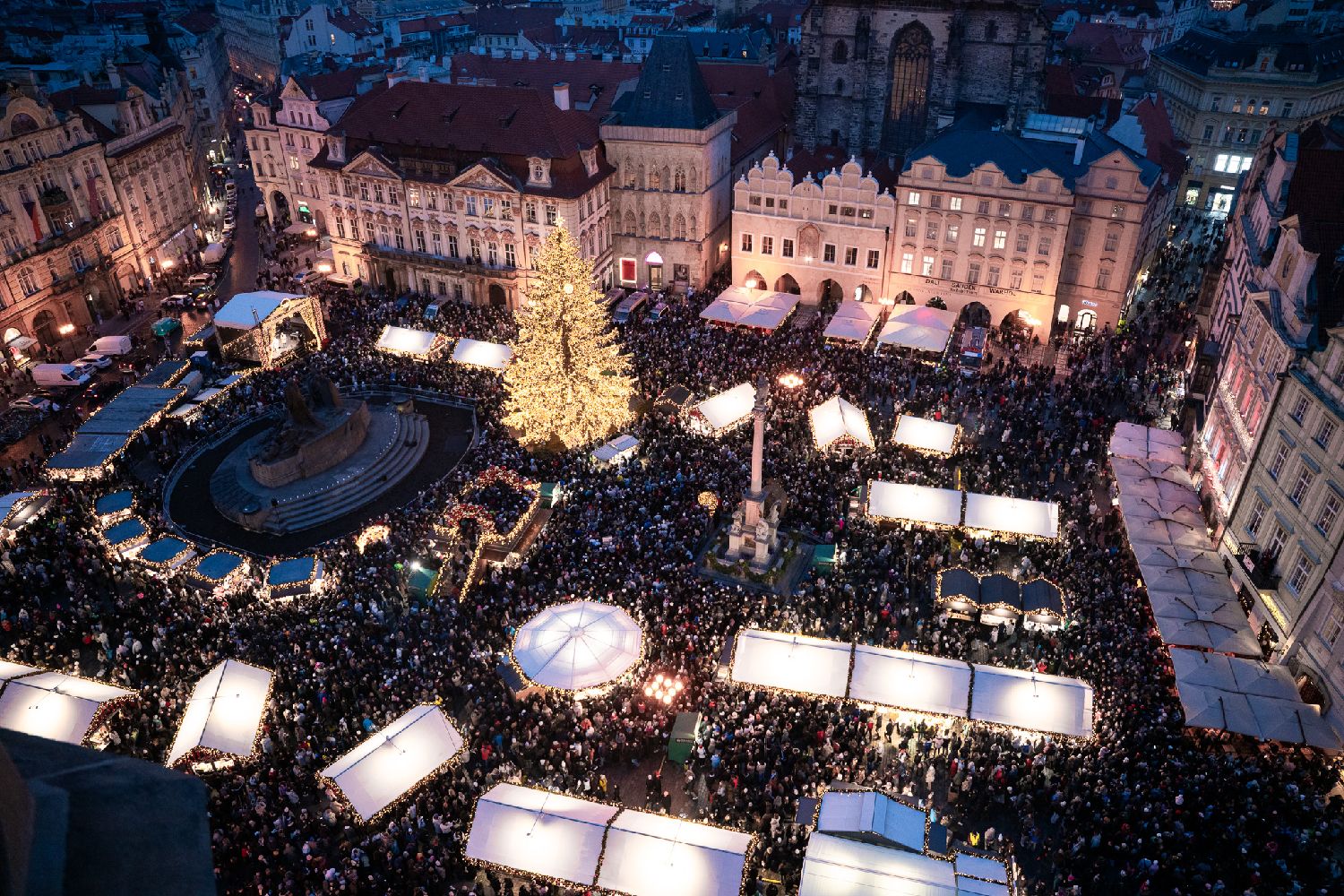 11月29日,位于捷克首都布拉格老城区的圣诞市场开始营业,吸引众多市民和游客前来。