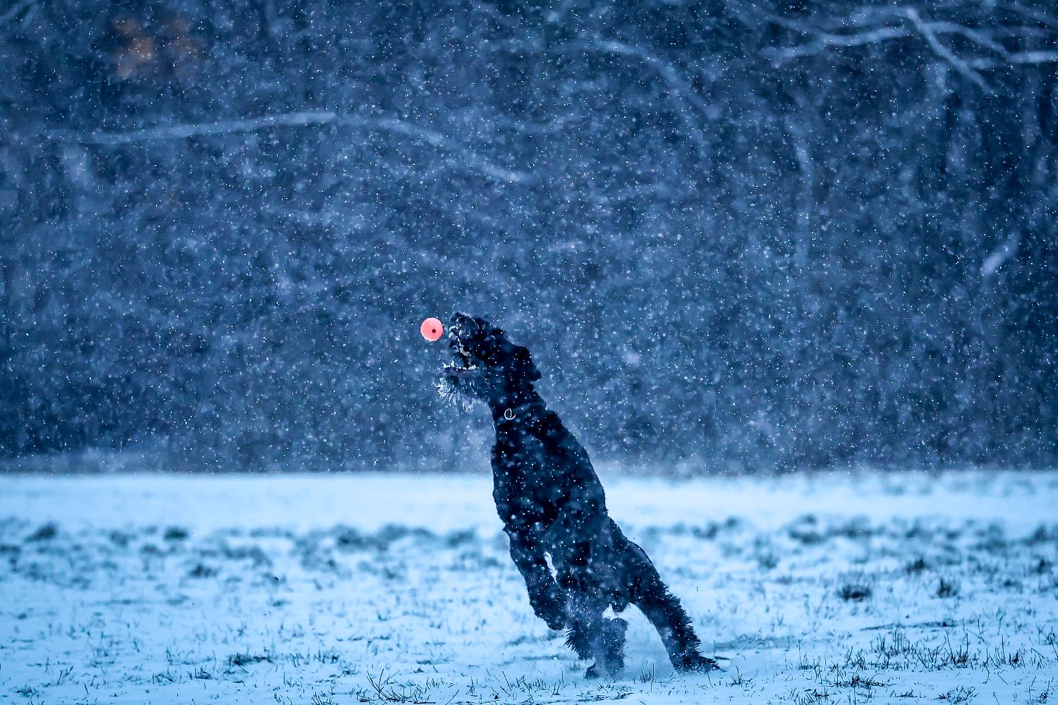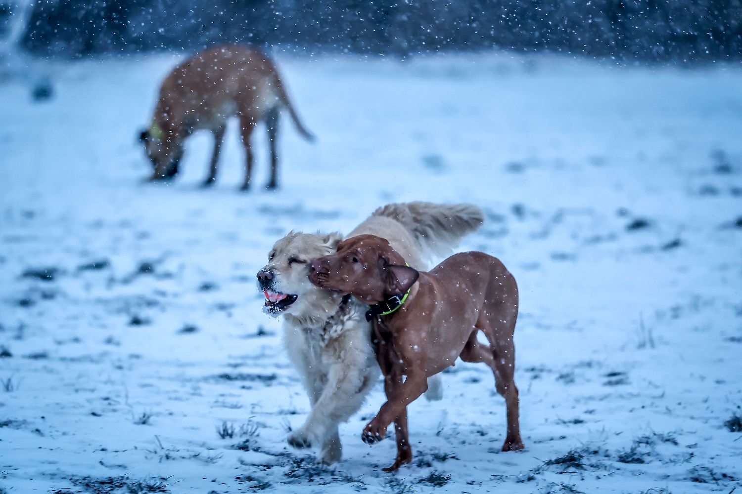 1月5日,在匈牙利布达佩斯,小狗在雪地里玩耍。