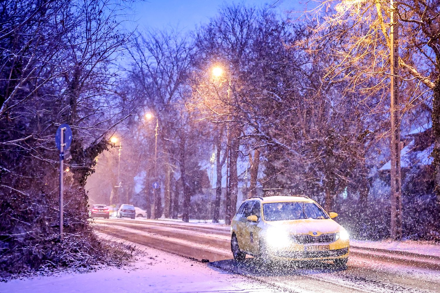 1月5日,在匈牙利布达佩斯,一辆汽车在雪中行驶。