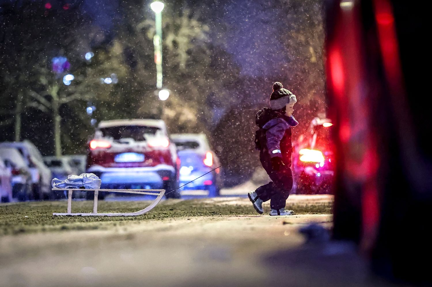 1月5日,在匈牙利布达佩斯,一名儿童在雪中行走。