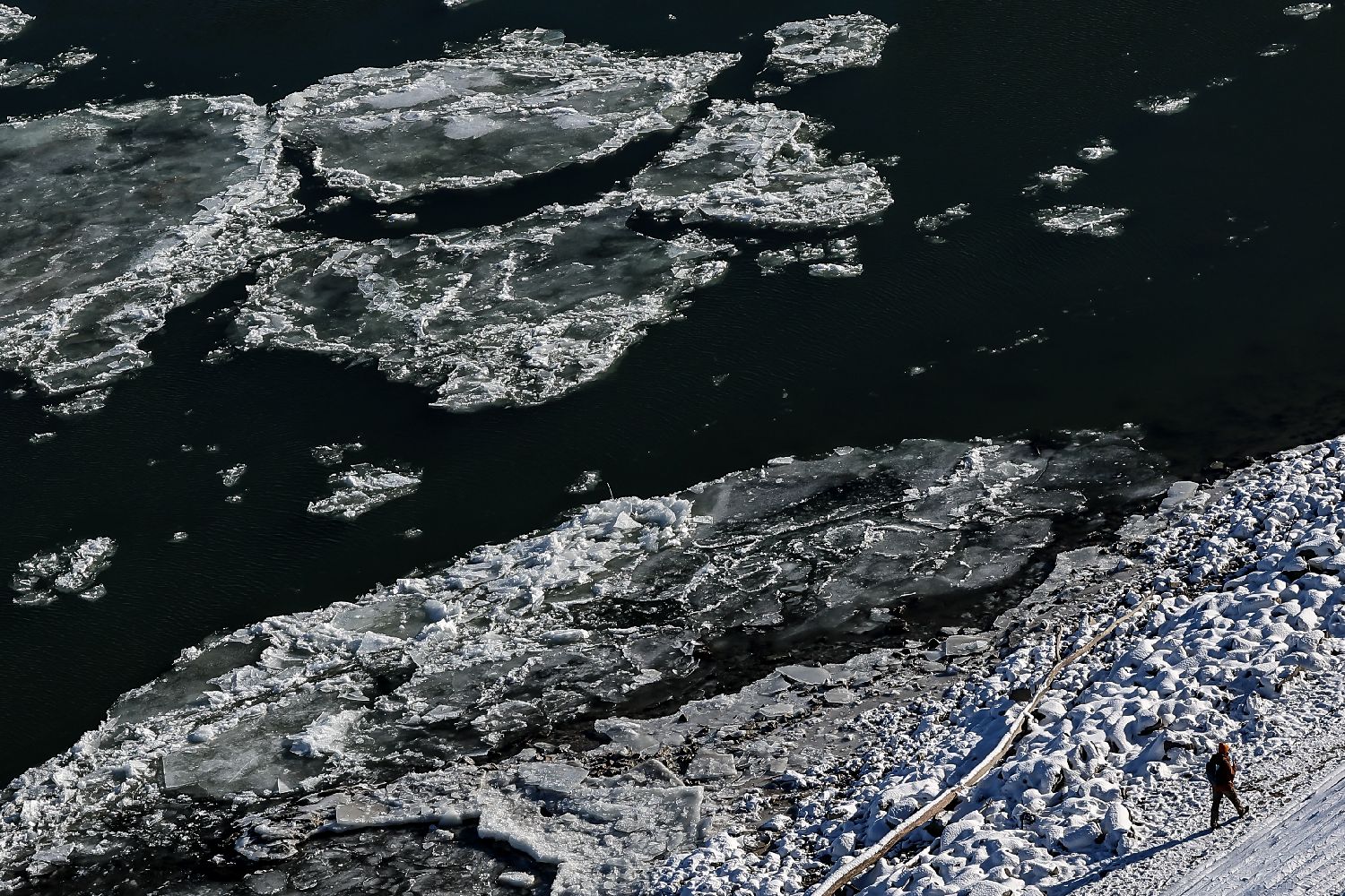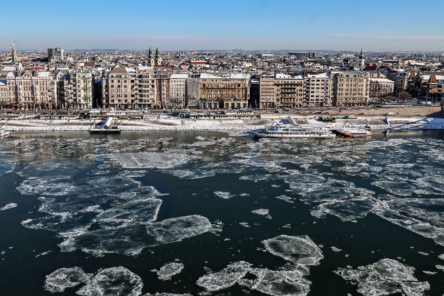 1月12日,在匈牙利布达佩斯,浮冰在多瑙河上漂流。(图片来源:本文图片均据新华社)