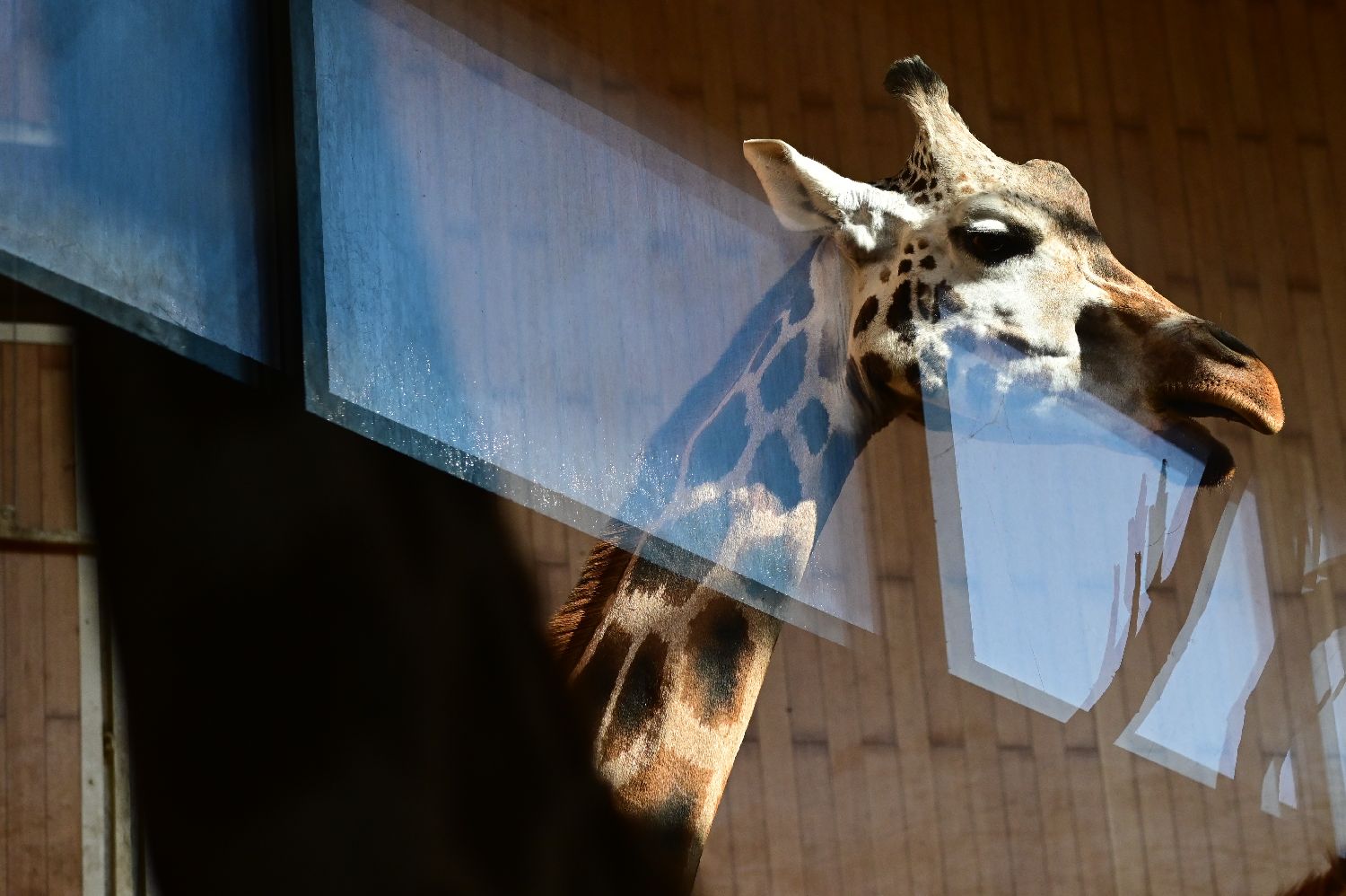 2月26日,在波兰华沙动物园,长颈鹿在场馆内活动。