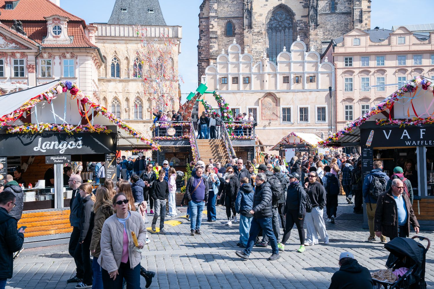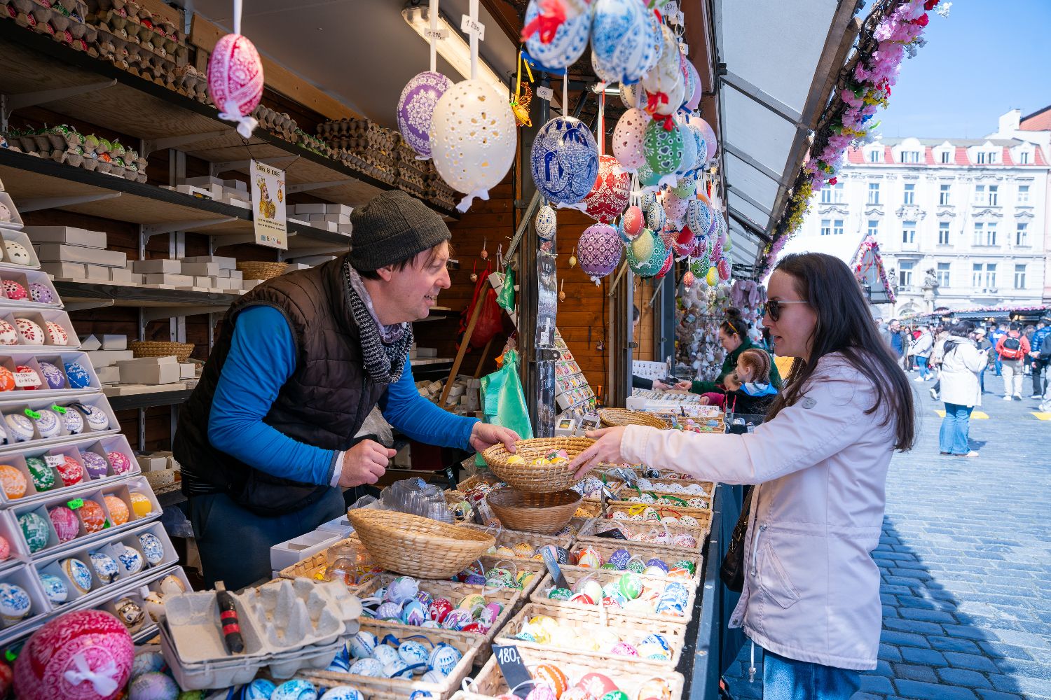 复活节临近,布拉格老城区举办特色集市,吸引市民与游客前来感受节日氛围。