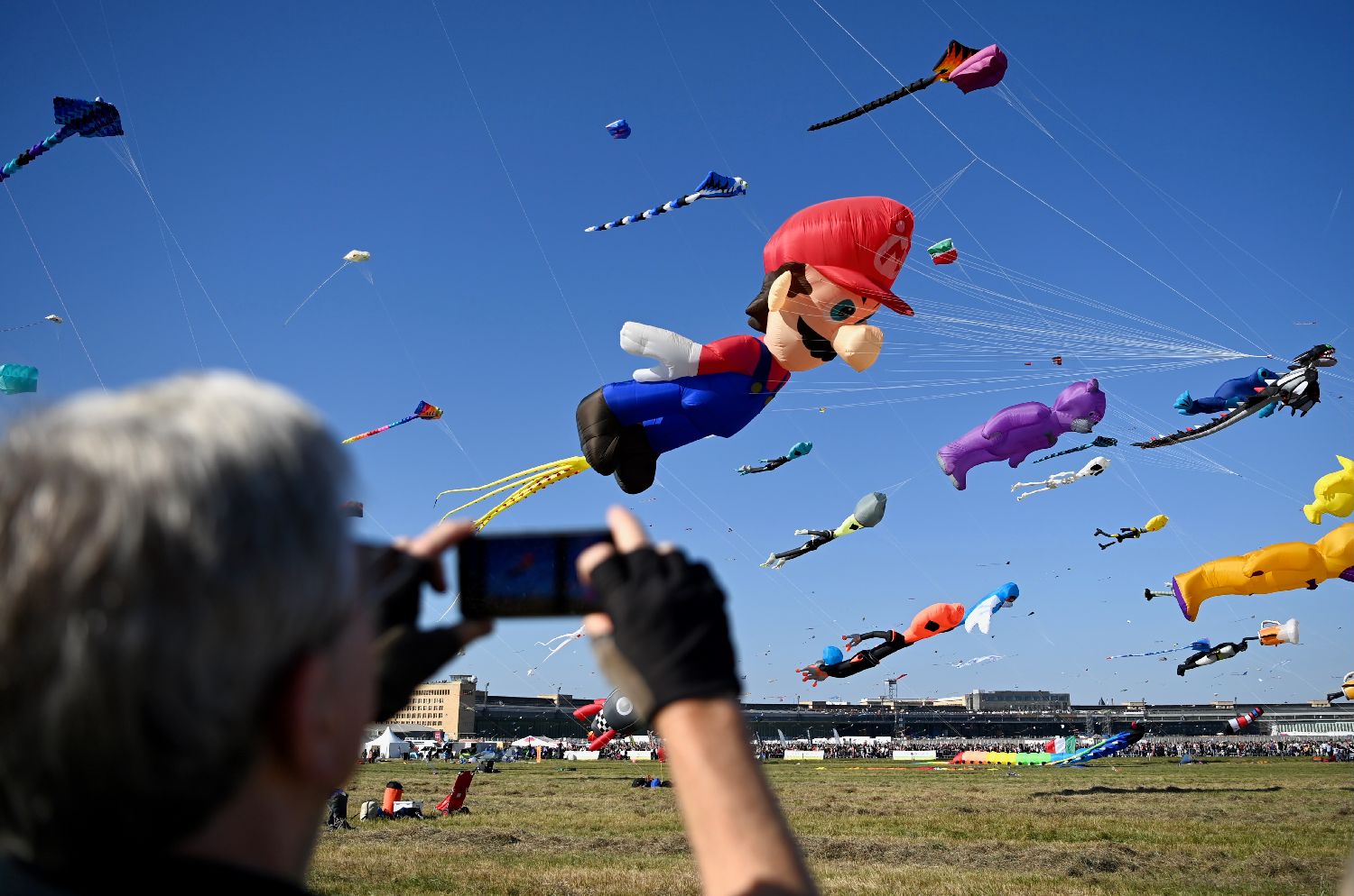 9月27日,在德国柏林,市民观赏放飞的风筝。