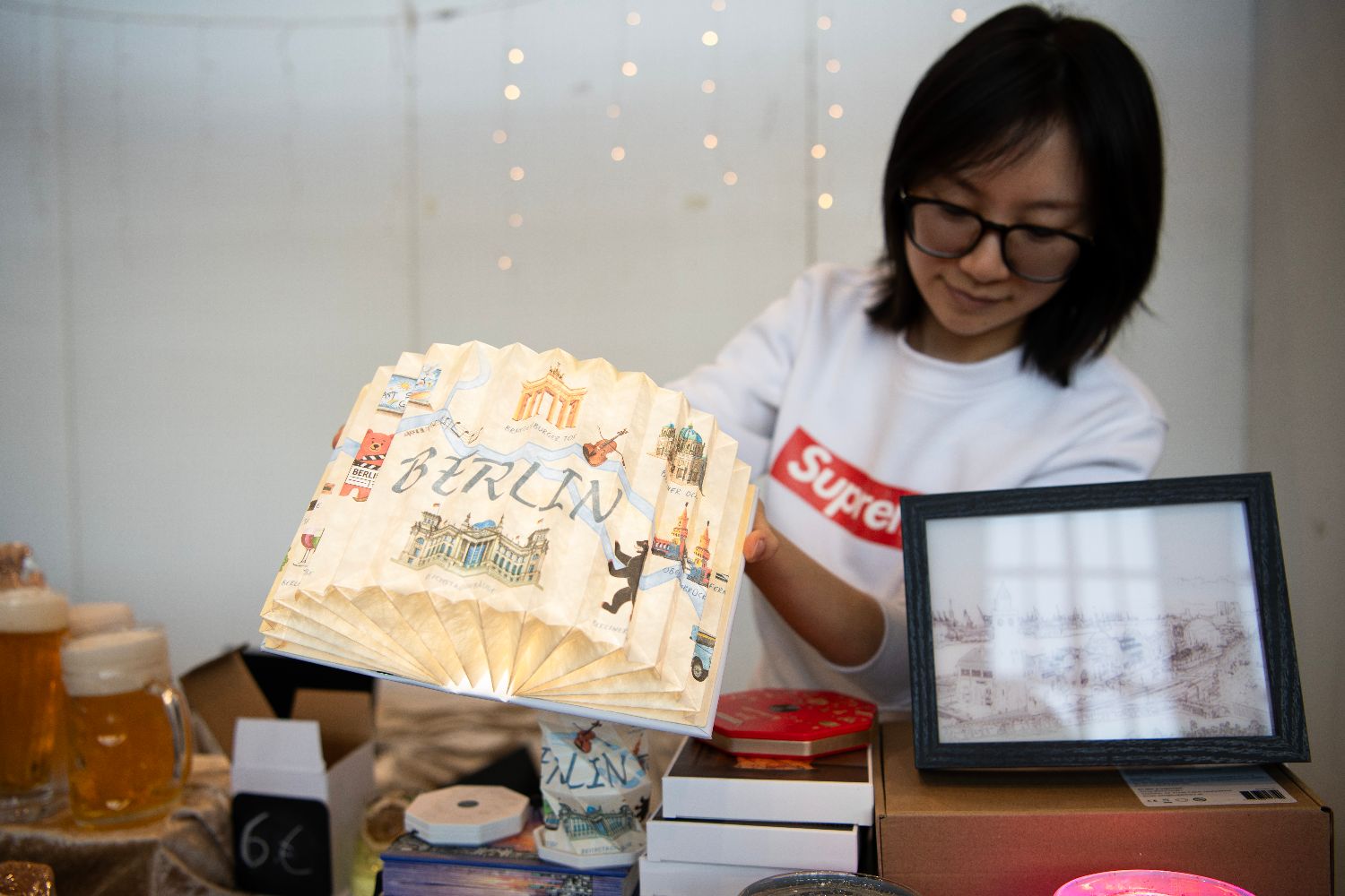 11月5日,中国展商在德国柏林举办的“柏林巴扎”上展示手工文创产品。(图片来源:本文图片均据新华社)
