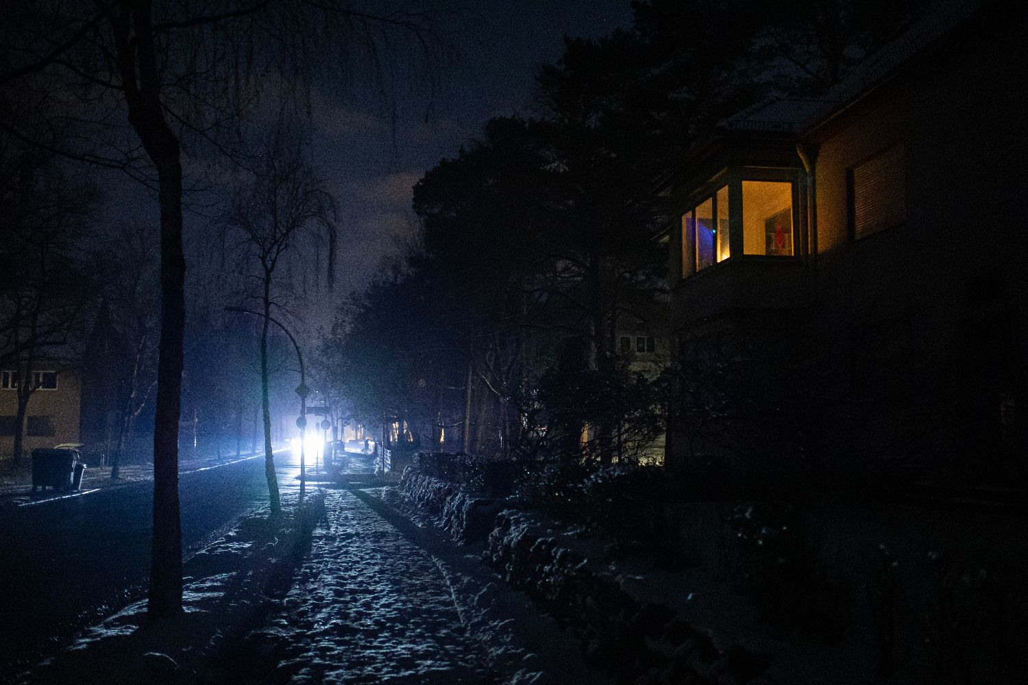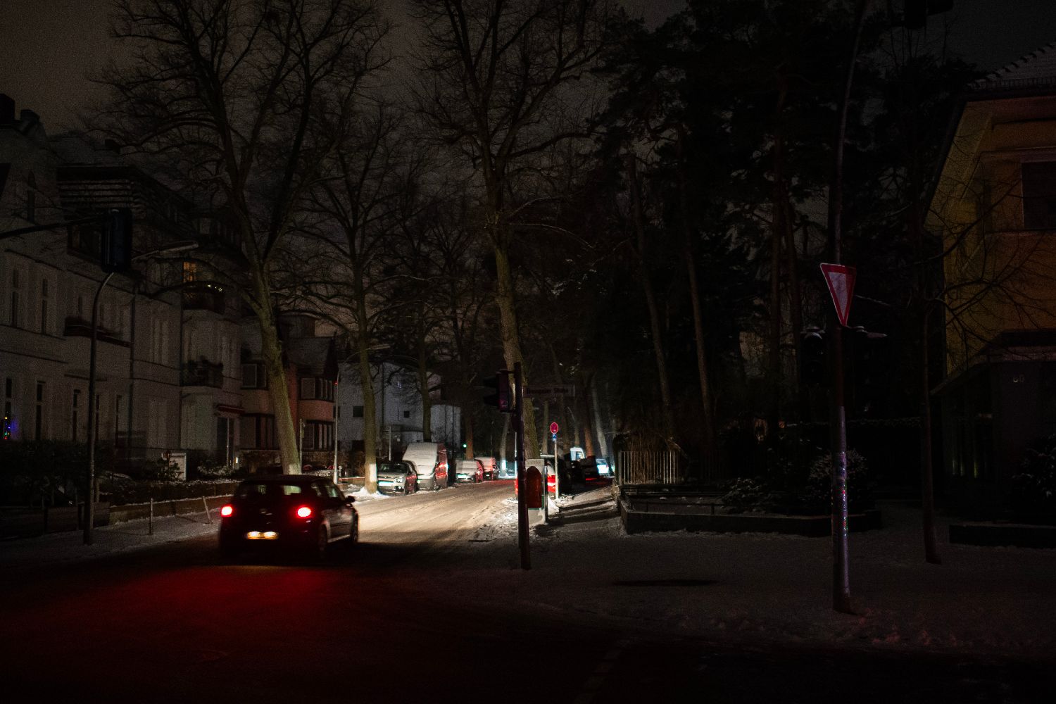 1月6日在德国首都柏林西南部拍摄的一条停电的街道。