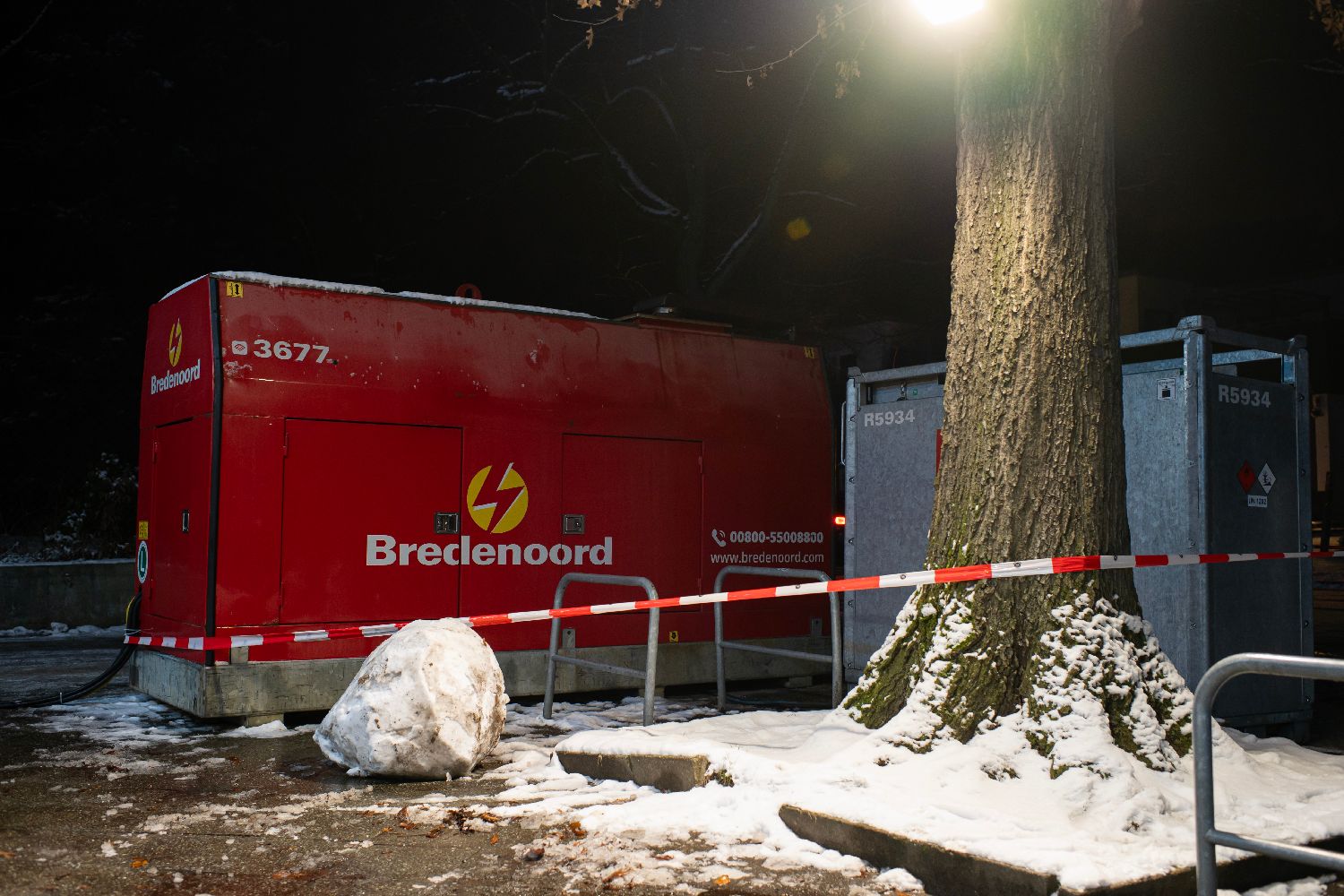 1月6日在德国首都柏林西南部停电区域拍摄的工作中的发电设备。
