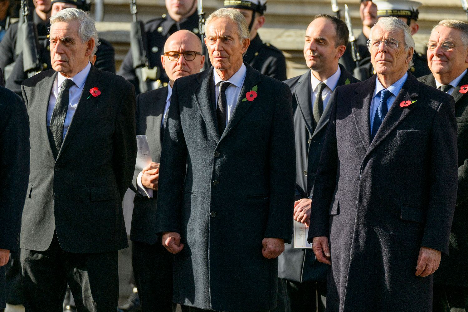 11月9日,在英国伦敦,英国前首相托尼·布莱尔(前中)、戈登·布朗(前左)和约翰·梅杰(前右)出席国家停战纪念日活动。(图片来源:本文图片均据新华社)